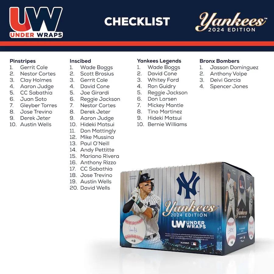 Featured is a New York Yankees Greats Under Wraps single signed mystery baseball. Featured in this series is Mickey Mantle, Derek Jeter, Aaron Judge, Juan Soto, Whitey Ford, Reggie Jackson and more. Each ball comes with the MLB hologram. There are four series each baseball can be (the odds are in parentheses): Pinstripes (1:3), Inscribed (1:3), Yankees Legends (1:6), Bronx Bombers (1:6). Please note: You will only receive one mystery signed baseball. No returns will be accepted for mystery baseballs. This ball would make a great addition to any sports memorabilia collection!