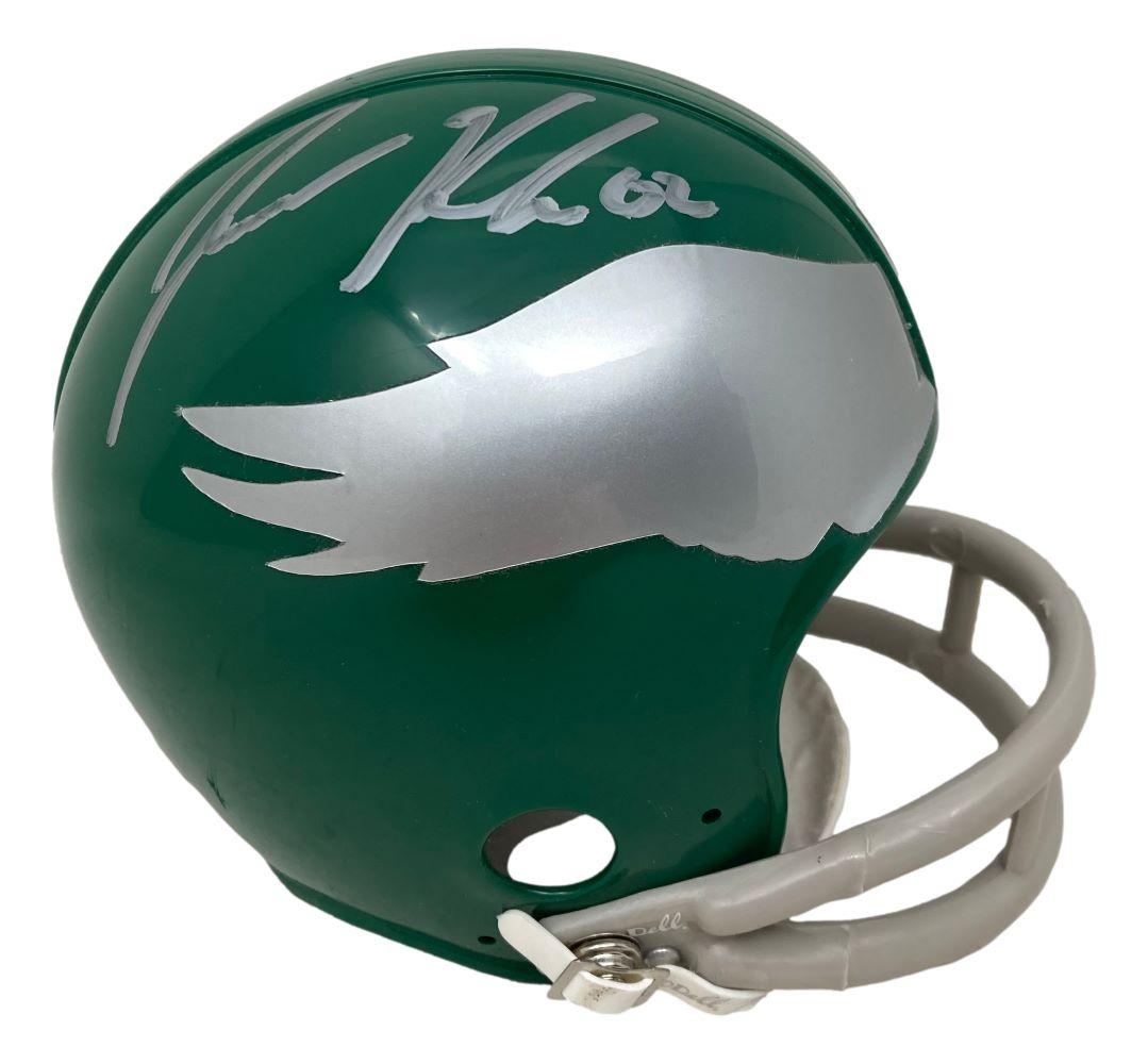 Riddell Philadelphia Eagles throwback mini helmet. Hand-signed by Jason Kelce.
