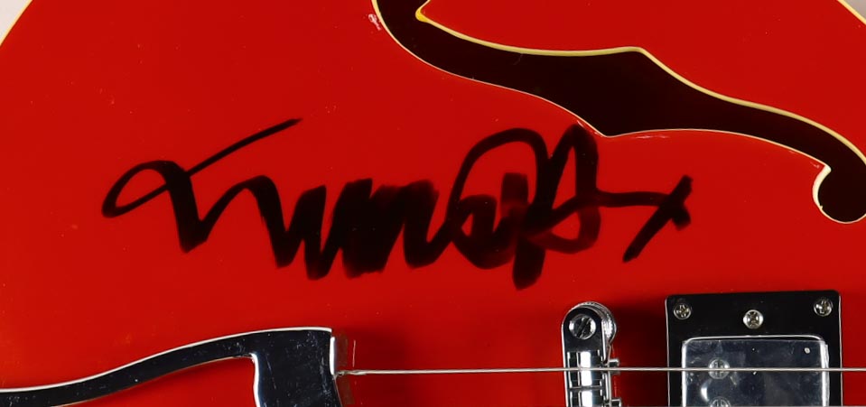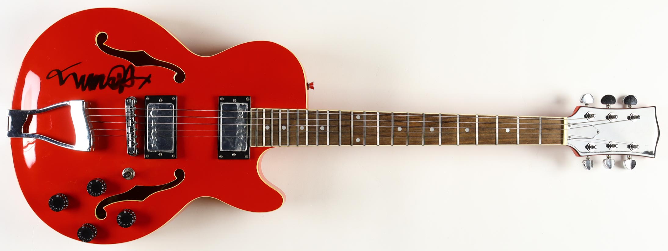 Electric guitar measures approximately 39" in length and has been hand-signed by Michael J. Fox.
