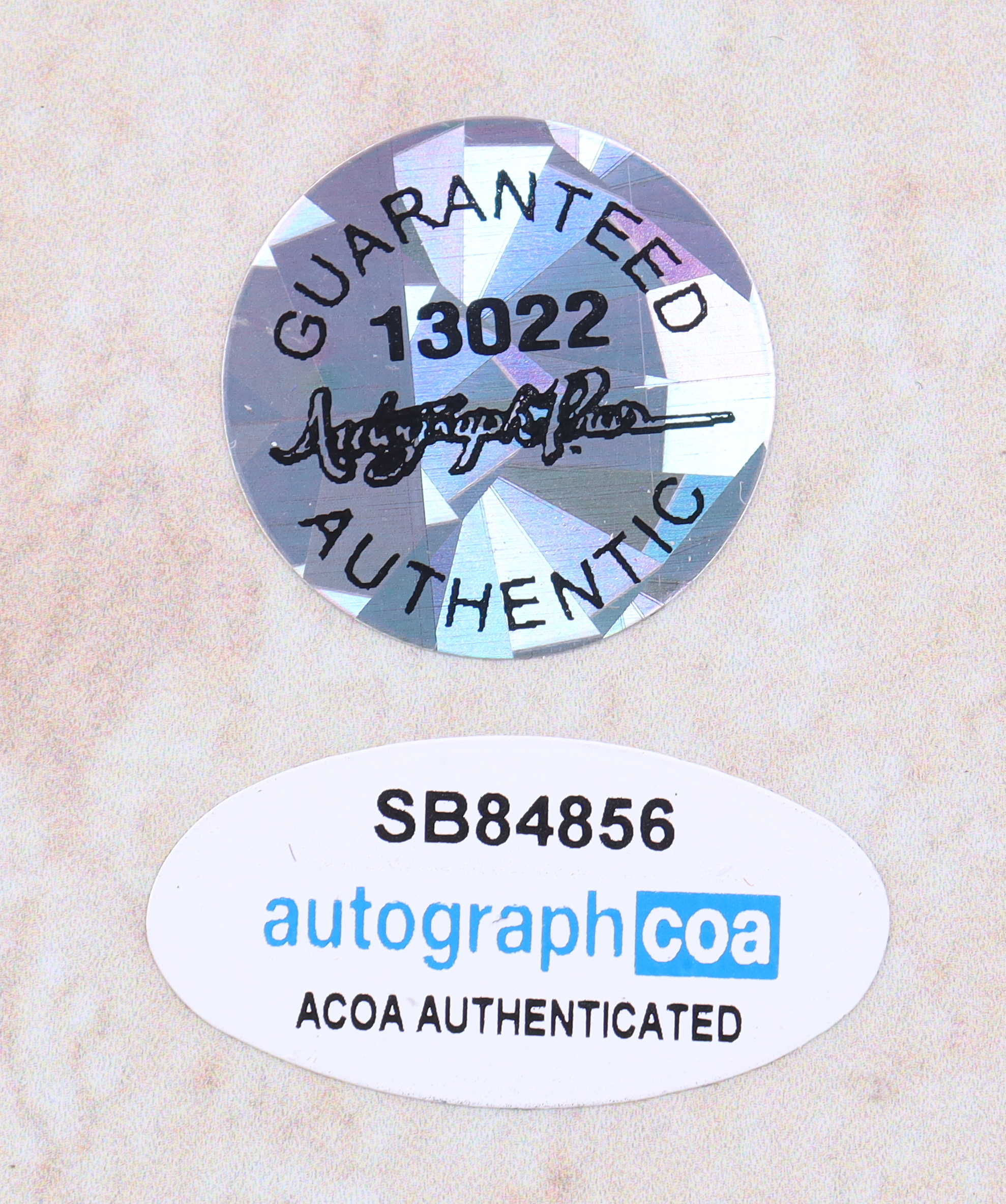 Authentication: AutographCOA Hologram