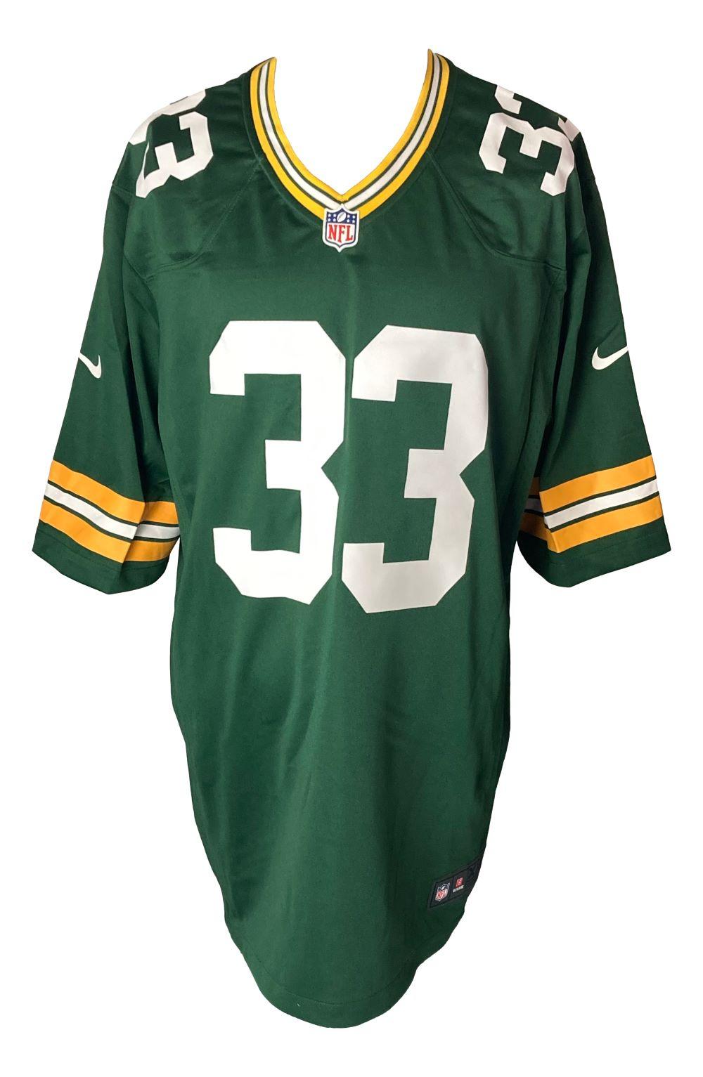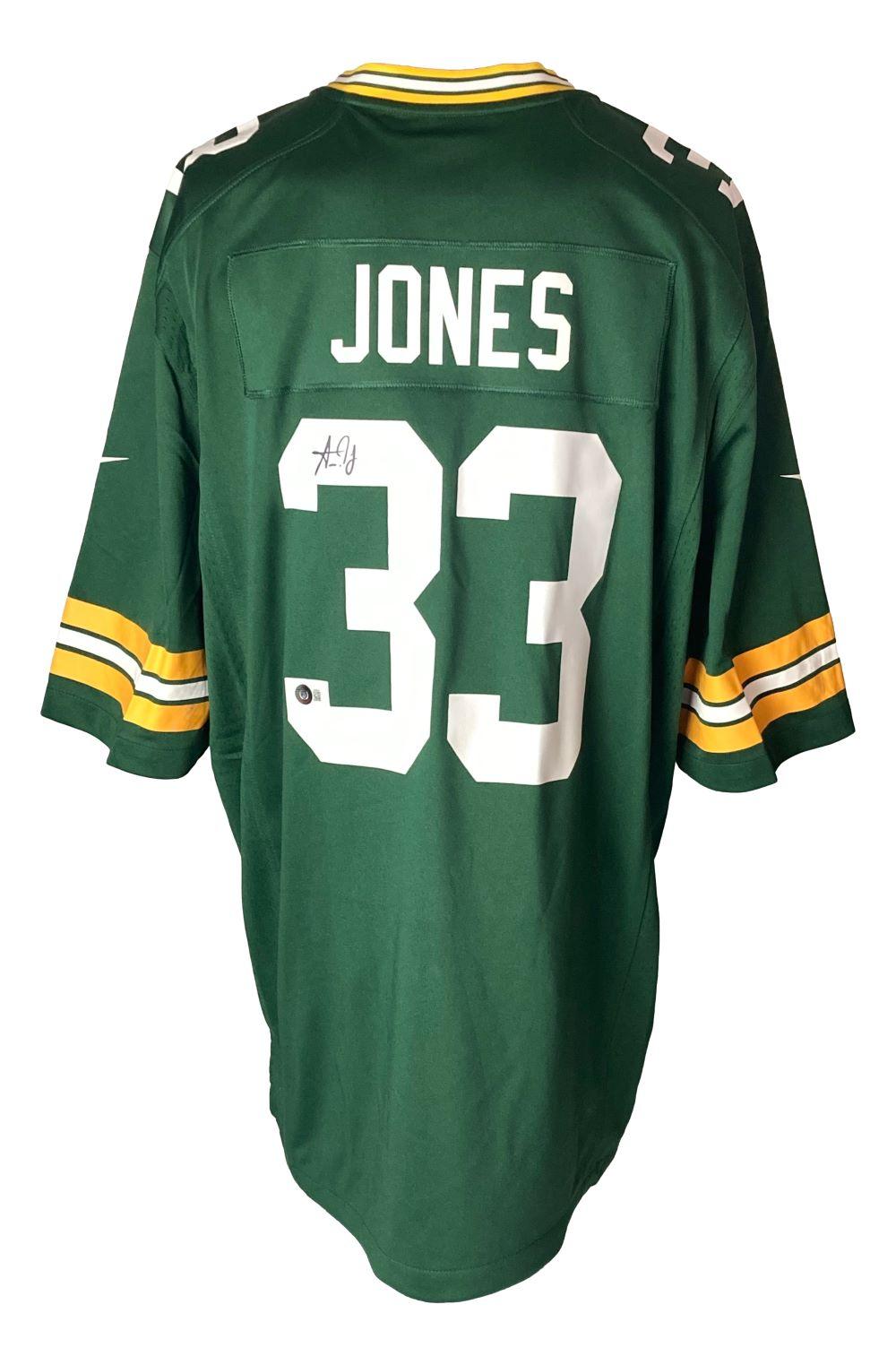 Nike style jersey with everything pressed on, size XXL. Hand-signed by Aaron Jones (Green Bay Packers).