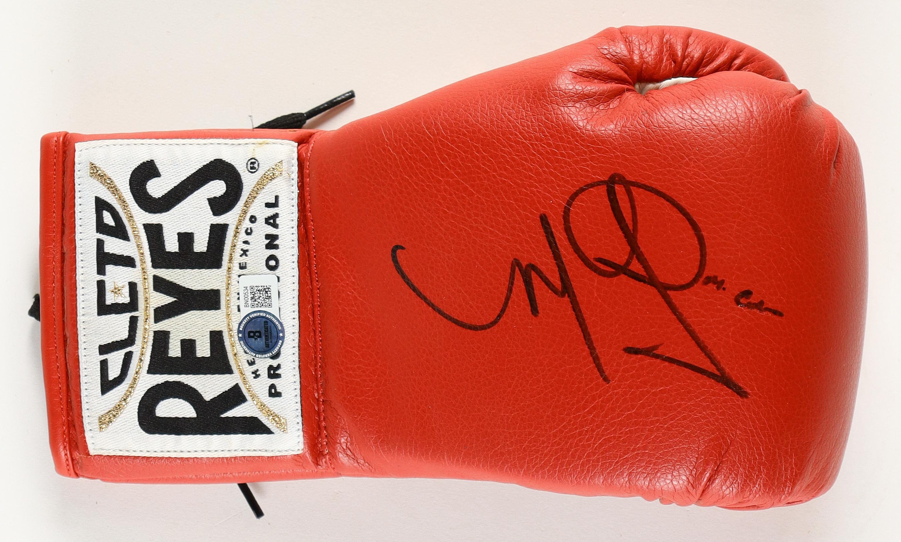 Cleto Reyes boxing glove has been hand-signed by Miguel Cotto.