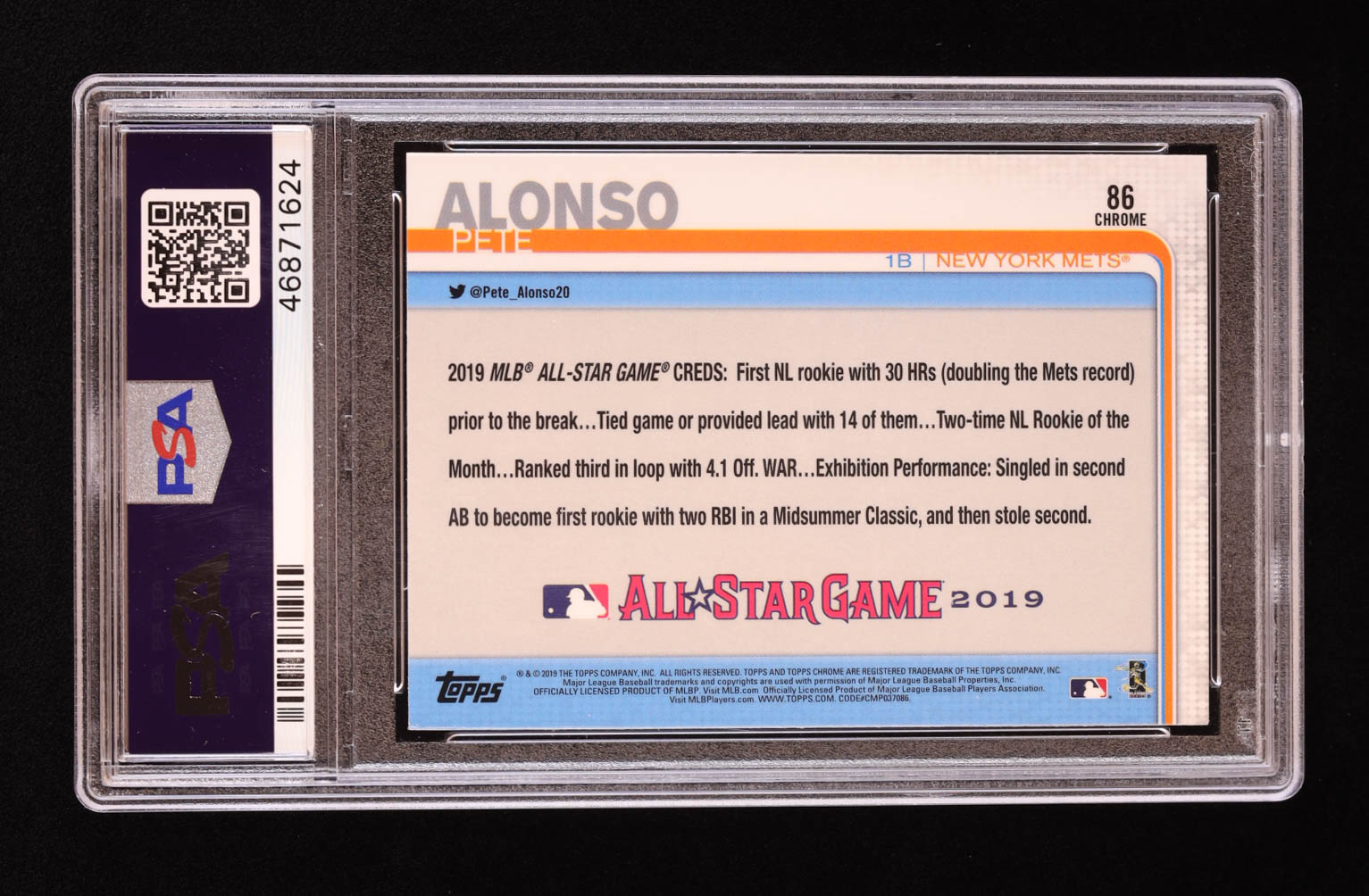 Pete Alonso 2019 Topps Chrome Update #86 AS RC (PSA 10)