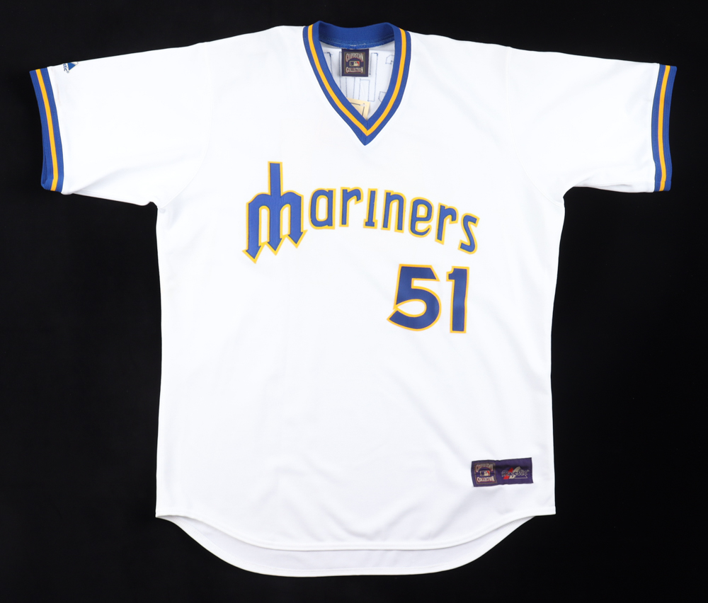 Majestic jersey with everything sewn on, size XL. Please note, the jersey has not been signed (Seattle Mariners). Please note, there are stains on the back of the jersey.