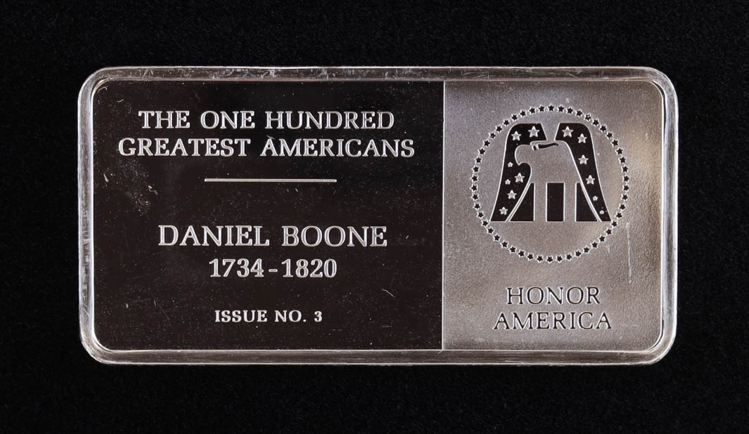 Franklin Mint One Hundred Greatest Americans: Daniel Boone - 500 Grains Sterling (.9636 oz. Silver) Silver Bullion Bar