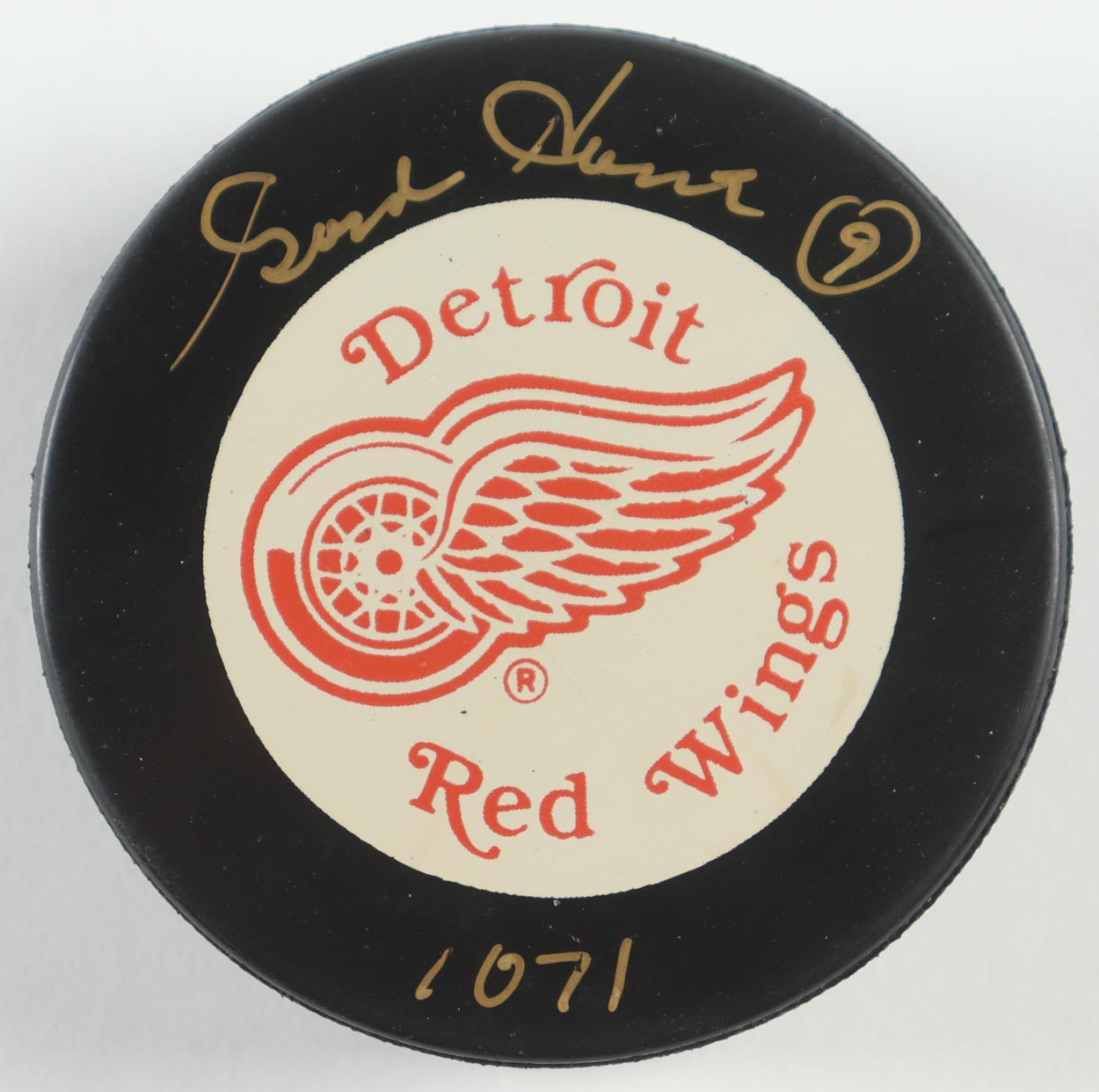Gordie Howe Signed Red Wings Logo Hockey Puck Inscribed "1071" (Beckett)