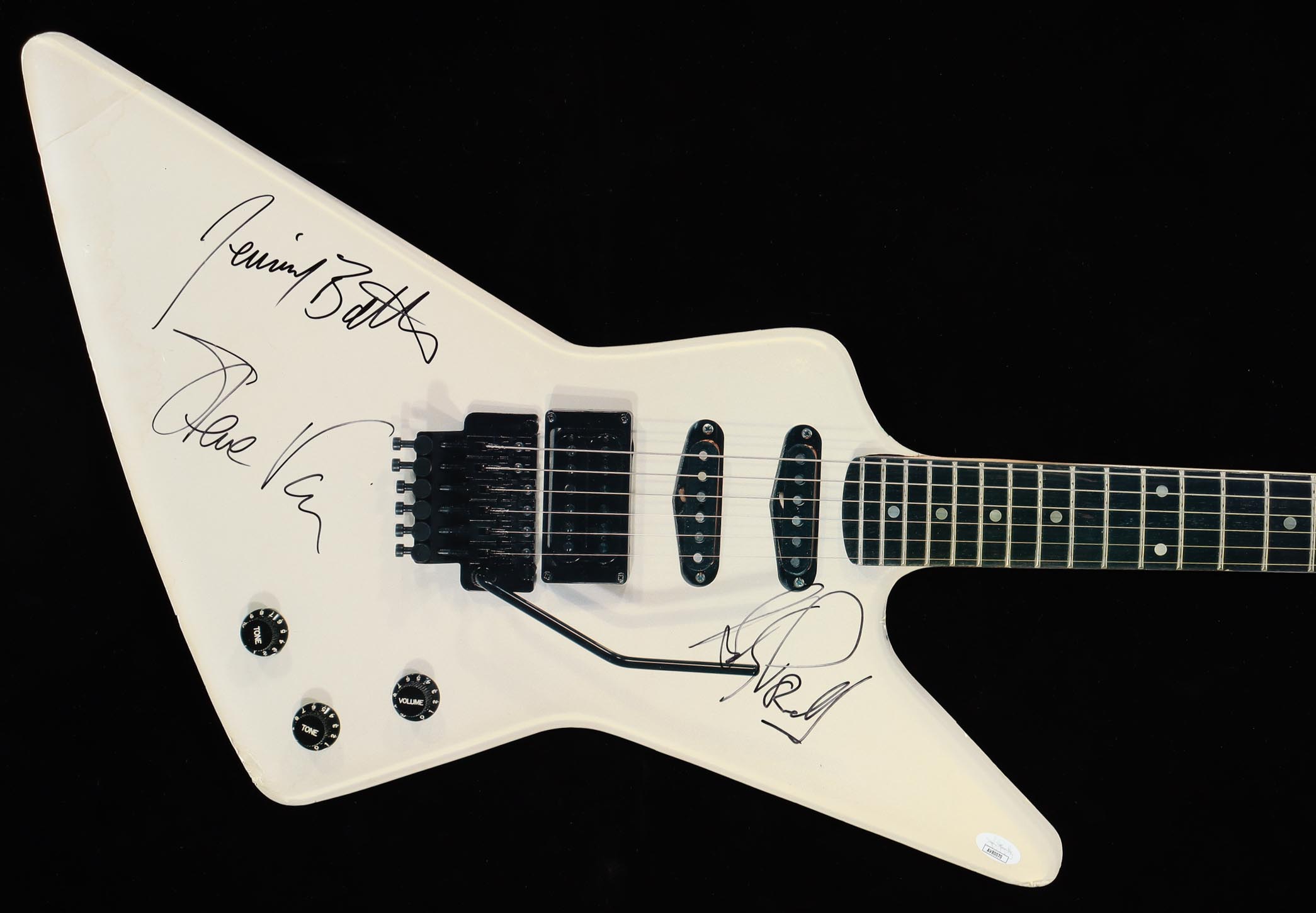 Steve Vai, Andy Powell & Jennifer Batten Signed 40" Cardboard Cut Out Guitar (JSA)