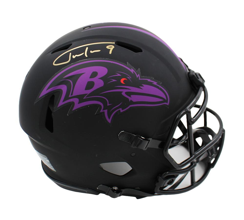Riddell Baltimore Ravens full-size authentic on-field eclipse alternate speed helmet. Hand-signed by Justin Tucker.