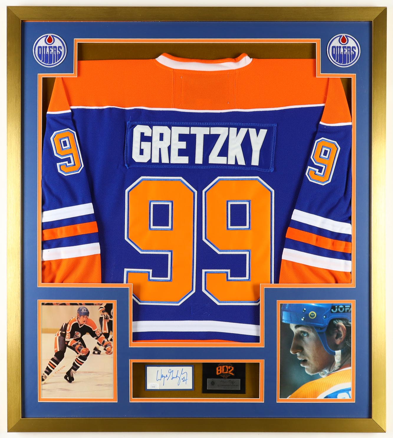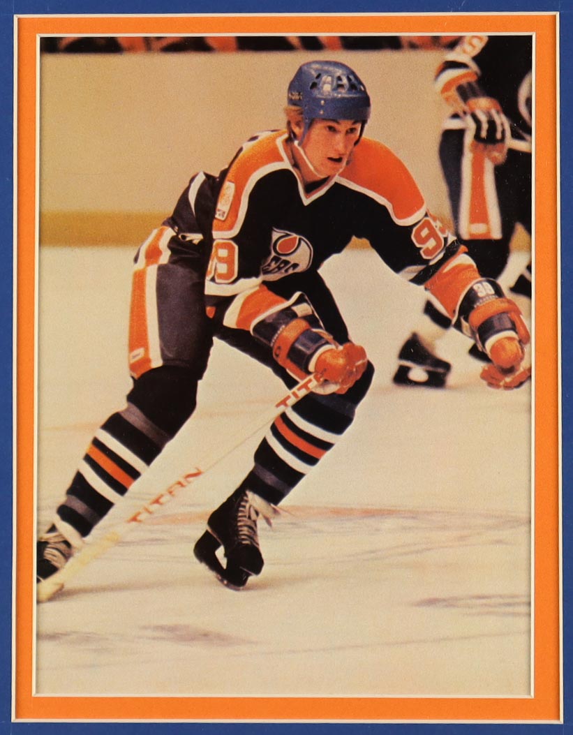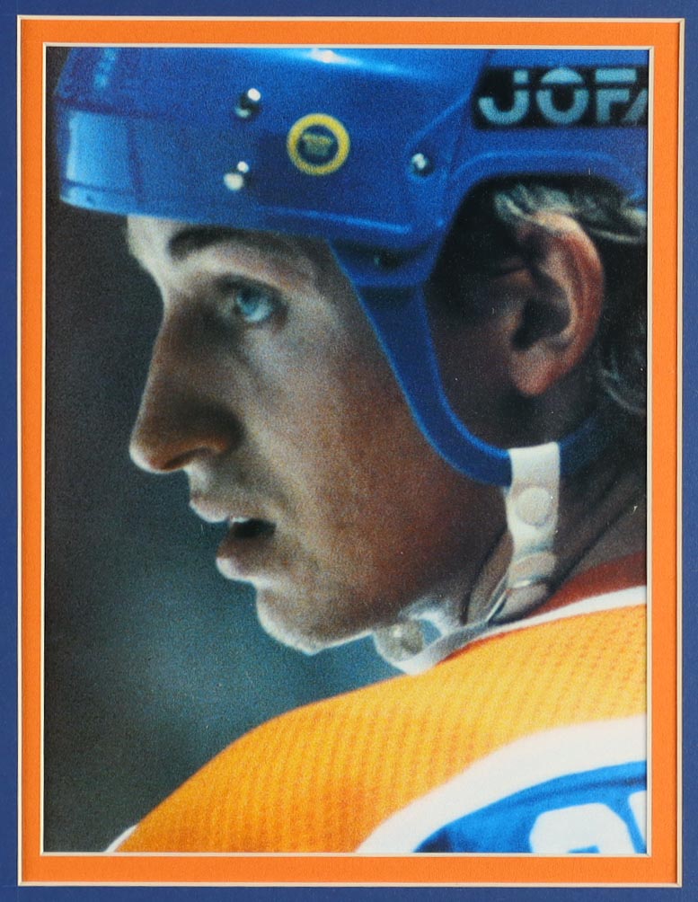 Custom frame measures approximately 32" x 36" in size and features a cut that has been hand-signed by Wayne Gretzky.