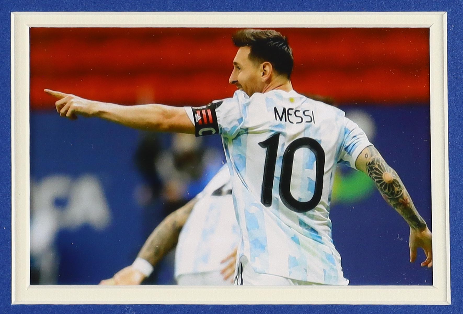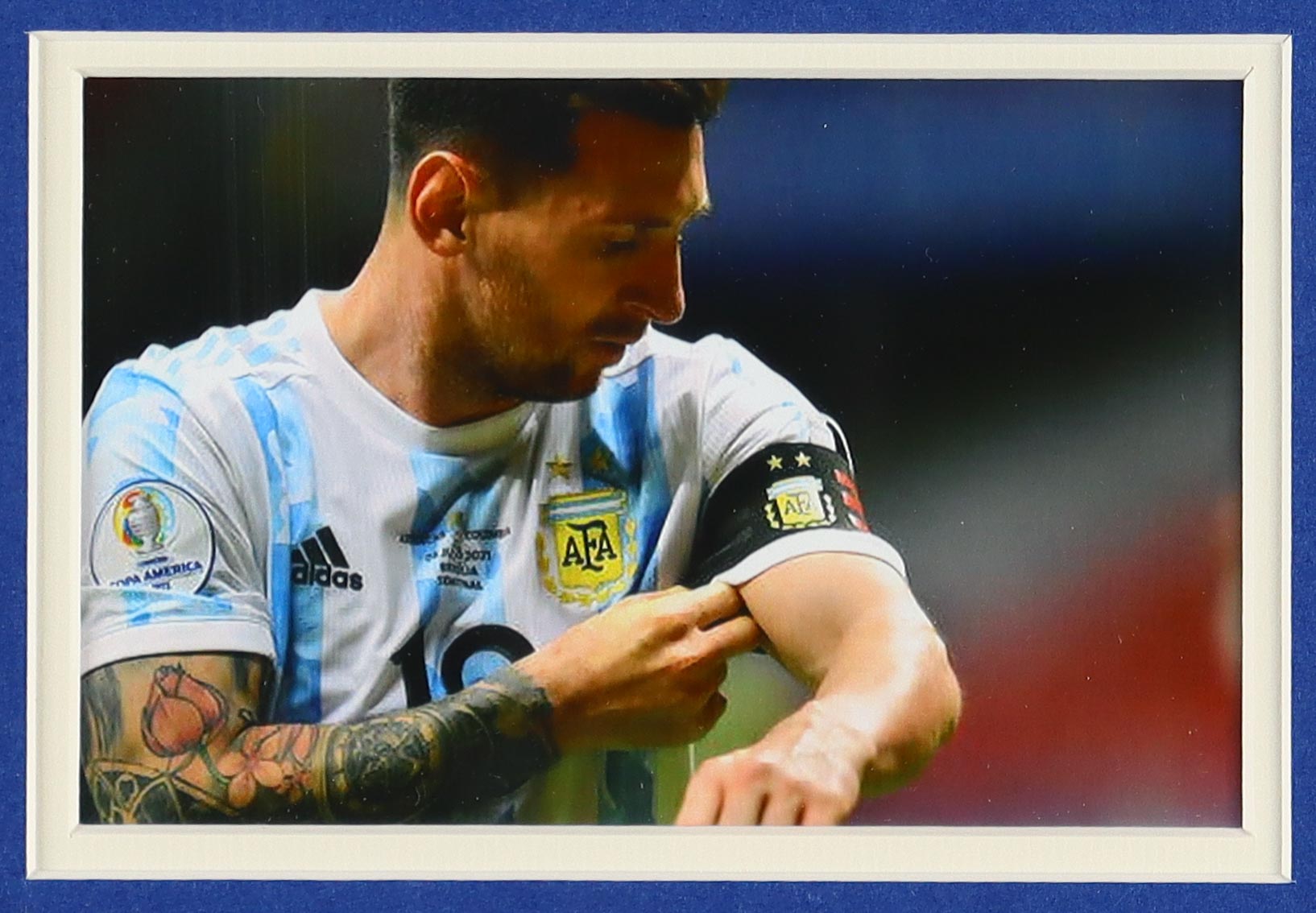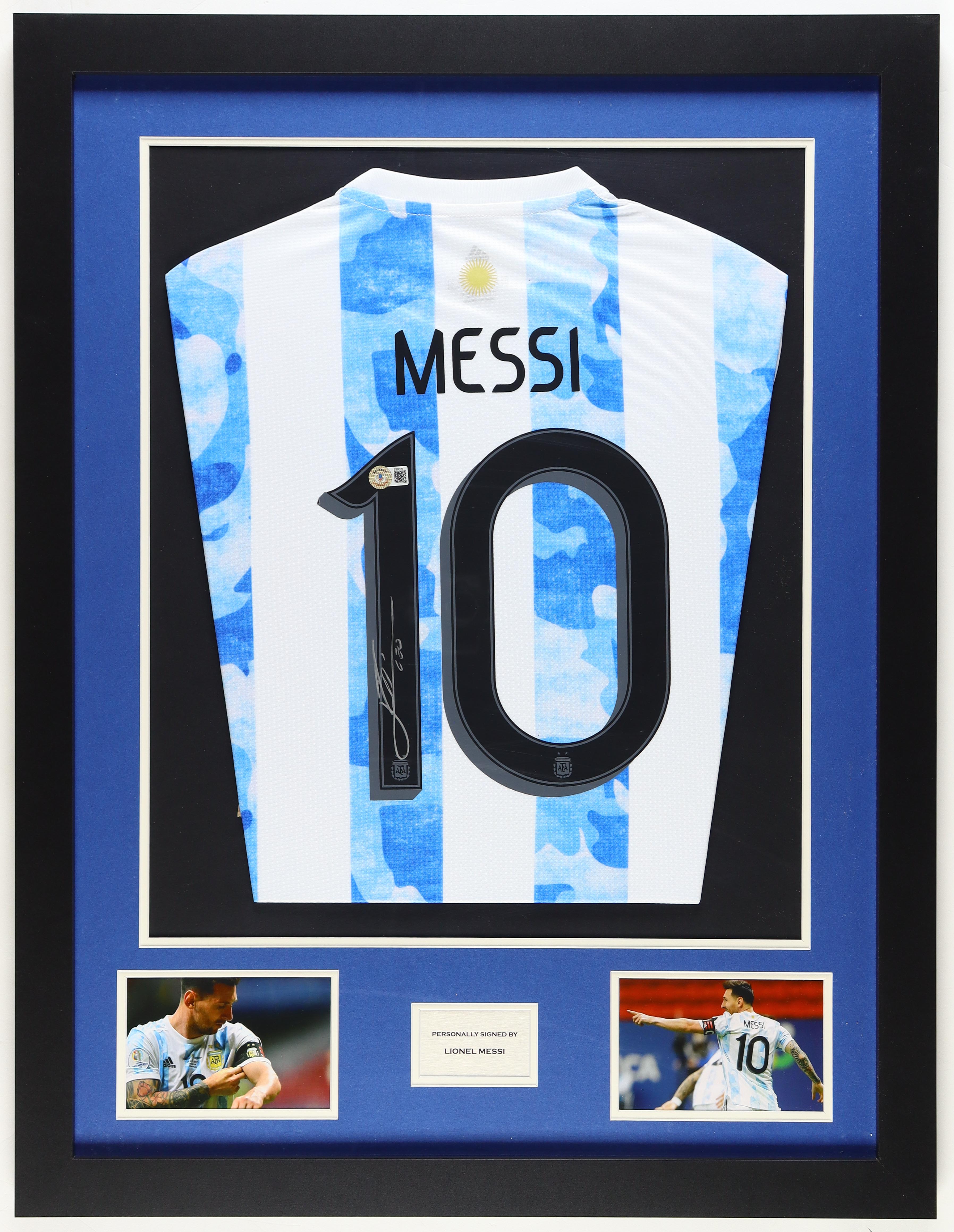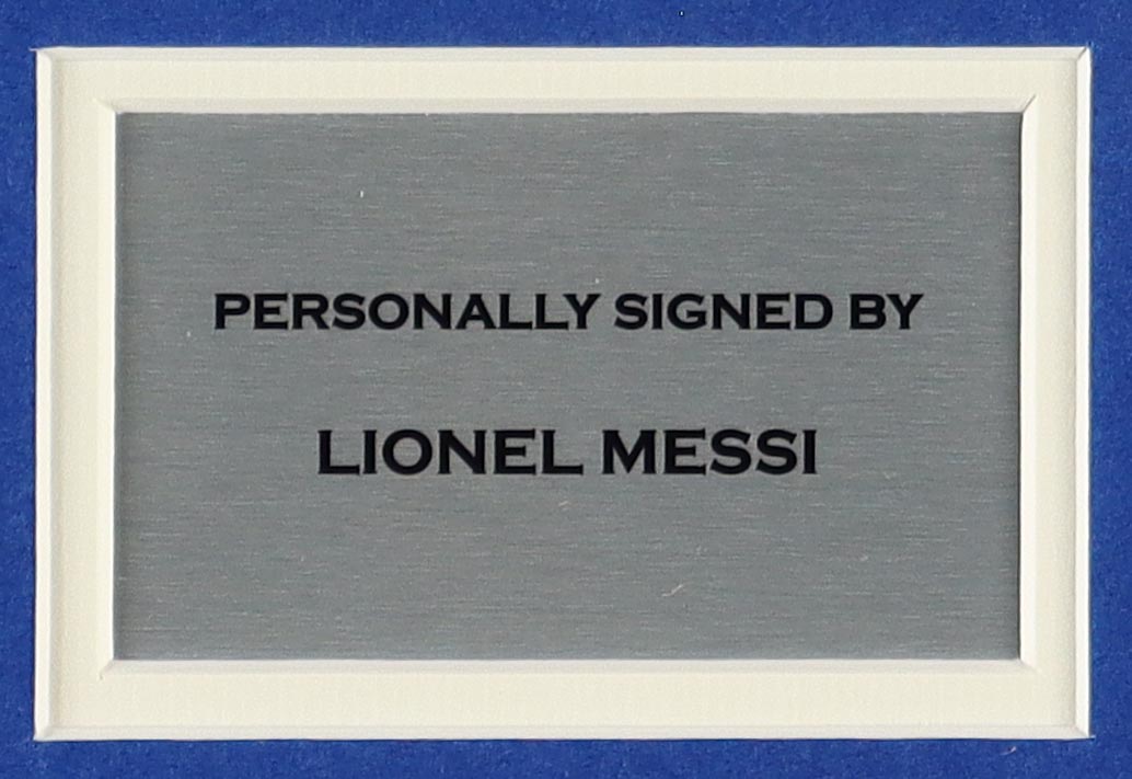 Custom frame measures 24.5" x 31.5" in size and features a jersey that has been hand-signed by Lionel Messi.