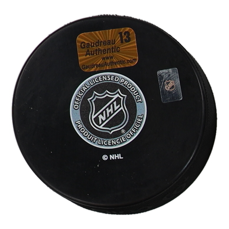 Johnny Gaudreau Signed Blue Jackets Logo Hockey Puck (Gaudreau)