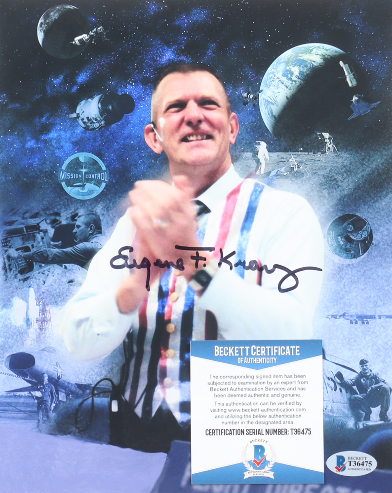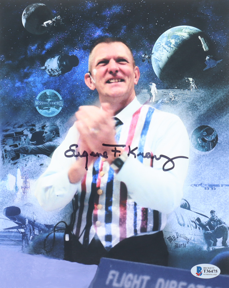 Photo measures 8" x 10" in size and has been hand-signed by Gene Kranz.
