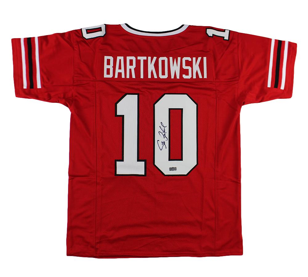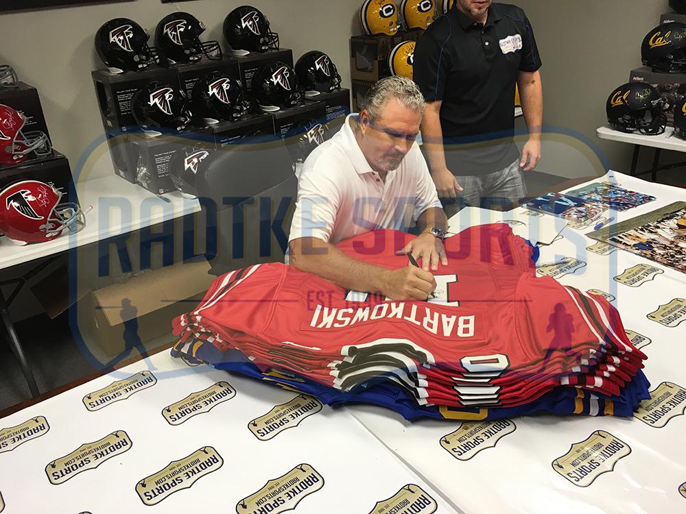 Custom style jersey with everything sewn on, size XL. Hand-signed by Steve Bartkowski.