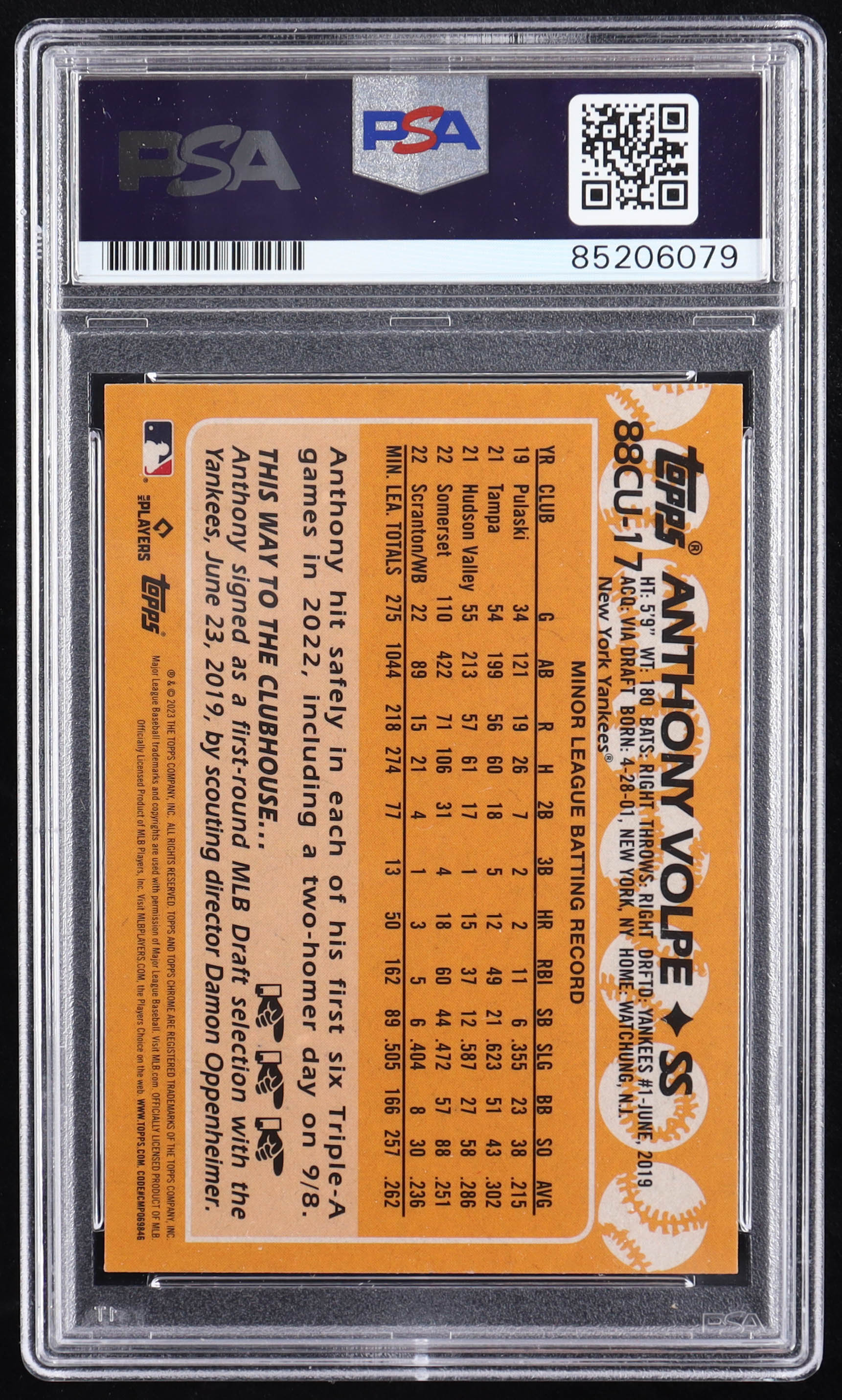 Anthony Volpe Signed 2023 Topps Chrome Update '88 Topps #88CU17 RC (PSA)