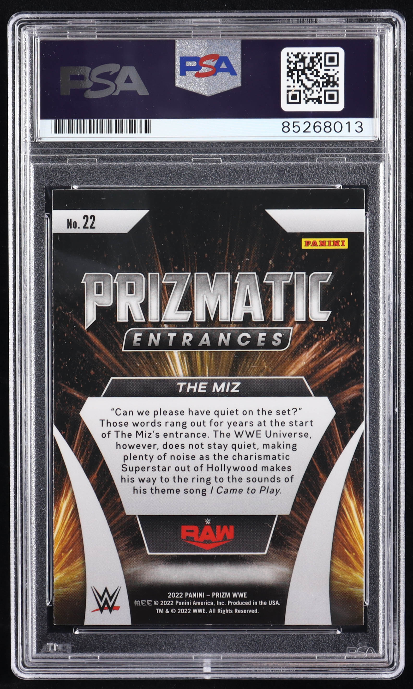 The Miz Signed 2022 Panini Prizm WWE Prizmatic Entrances #22 (PSA)