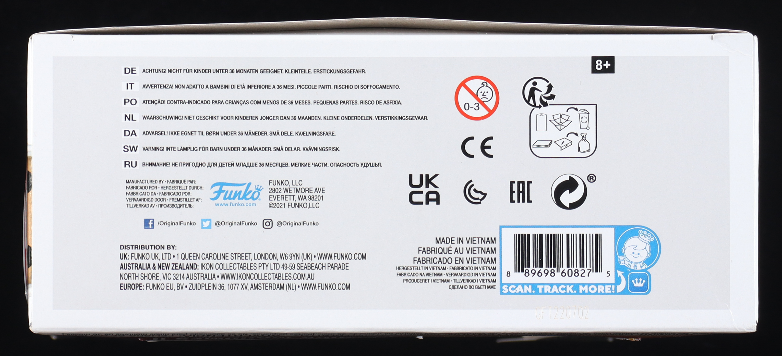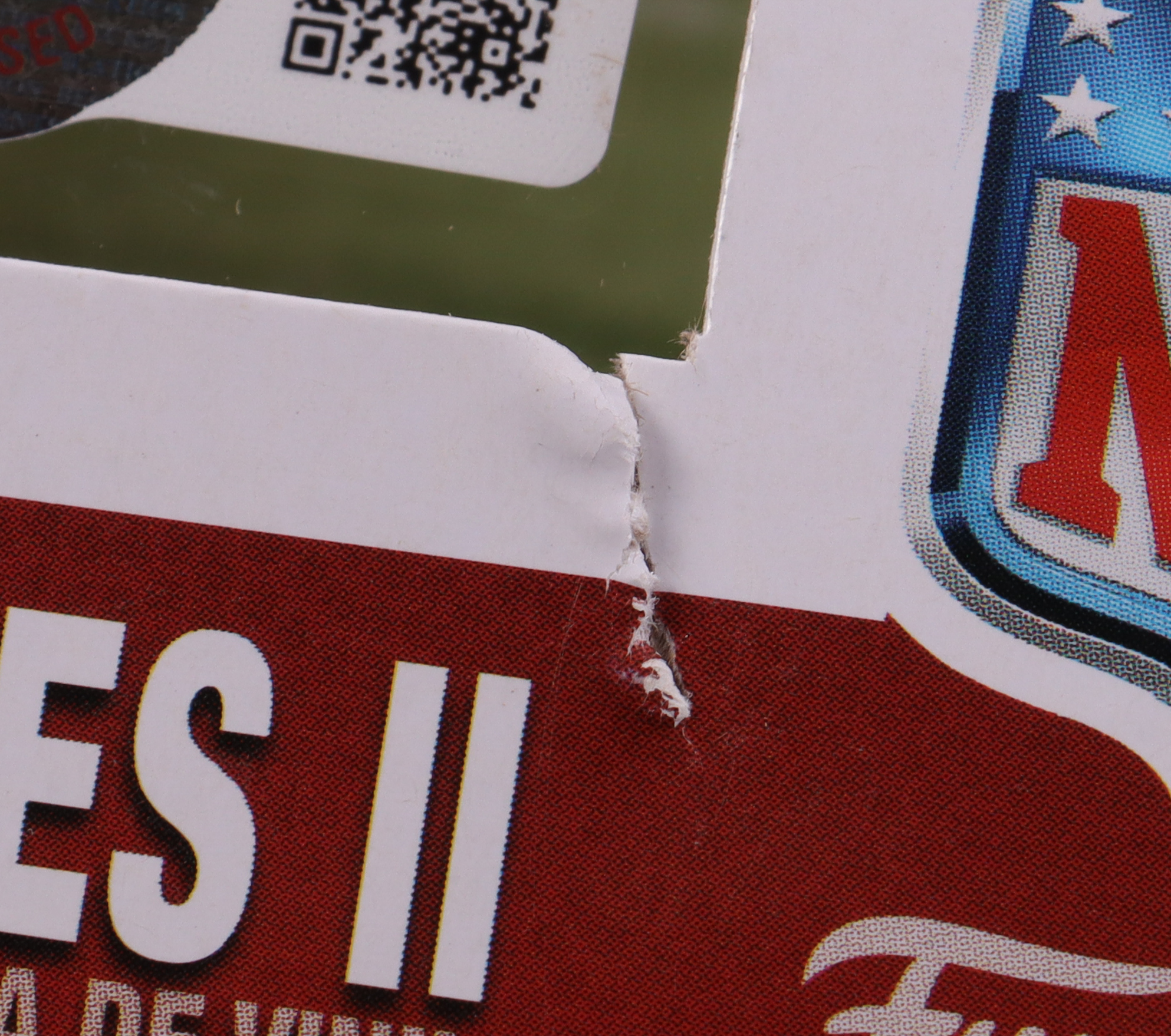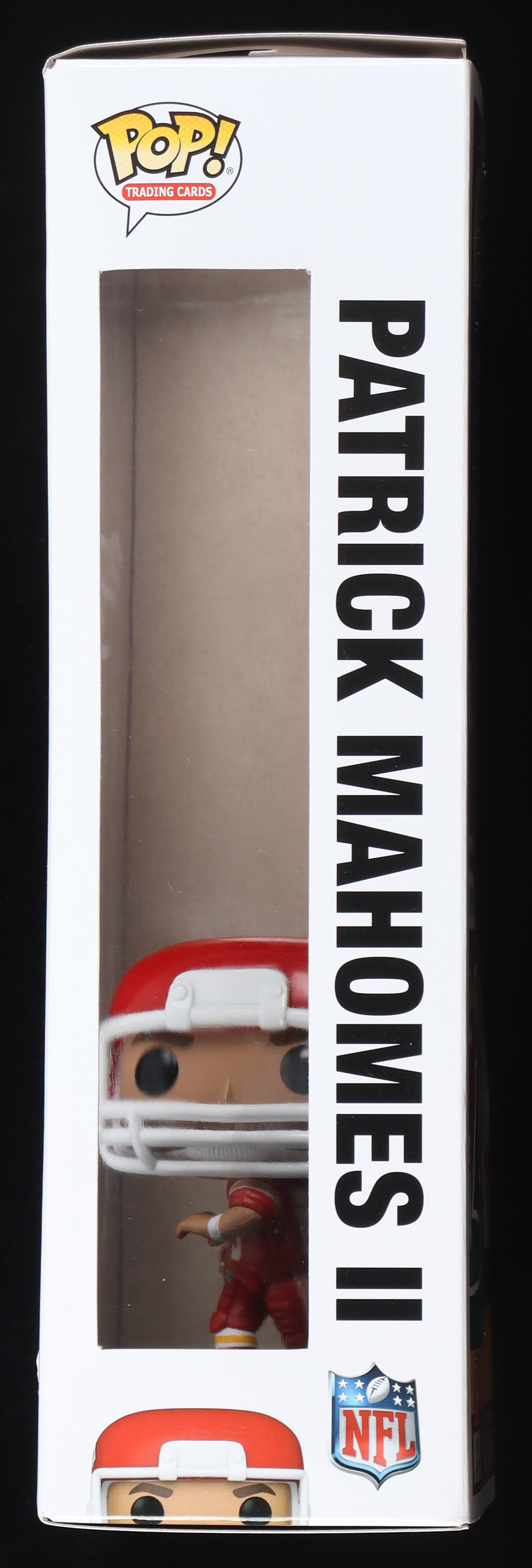 Vinyl Figure measures approximately 11" in height hand-signed on the window by Patrick Mahomes II (Kansas City Chiefs). Please note, the box show signs of wear all over.