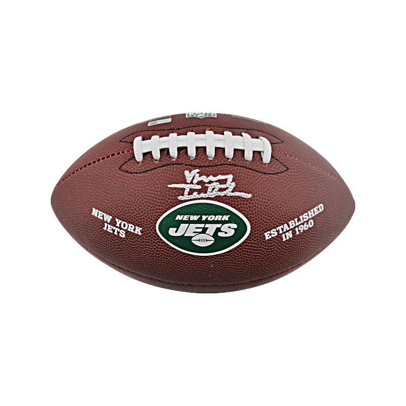 New York Jets logo football has been hand-signed by Vinny Testaverde.