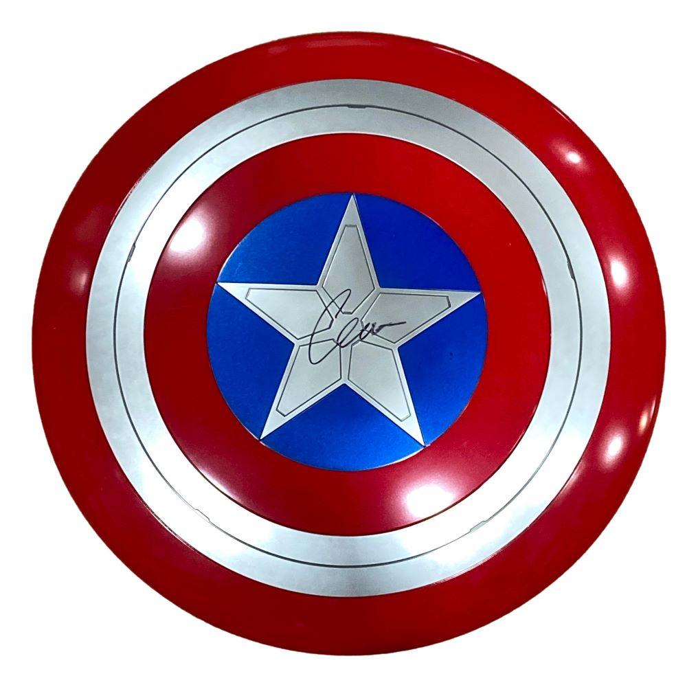 Hasbro Legend Series shield measures approximately 24" in diameter and has been hand-signed by Chris Evans (Captain America).