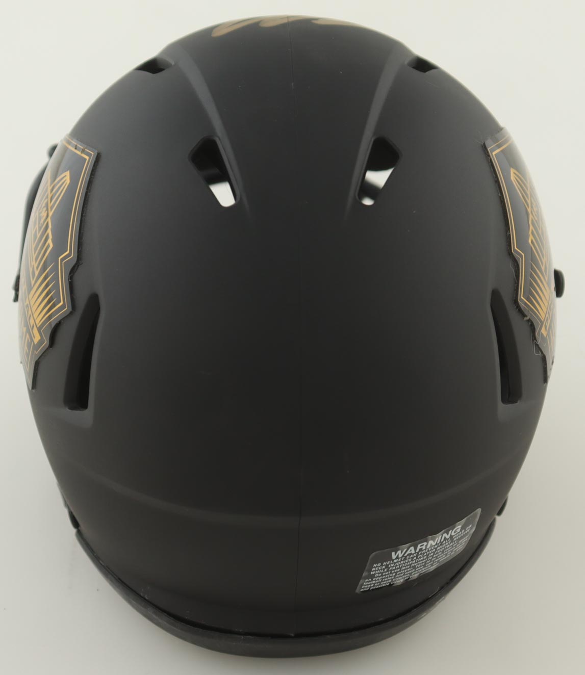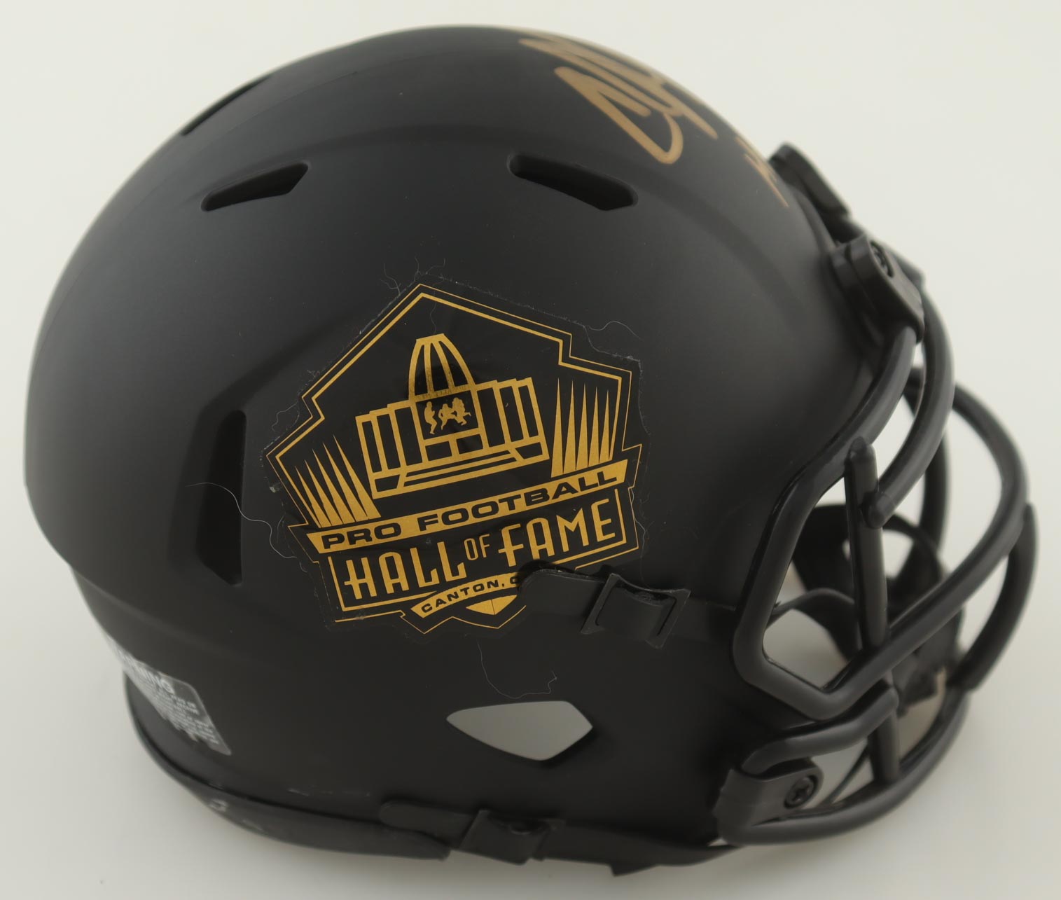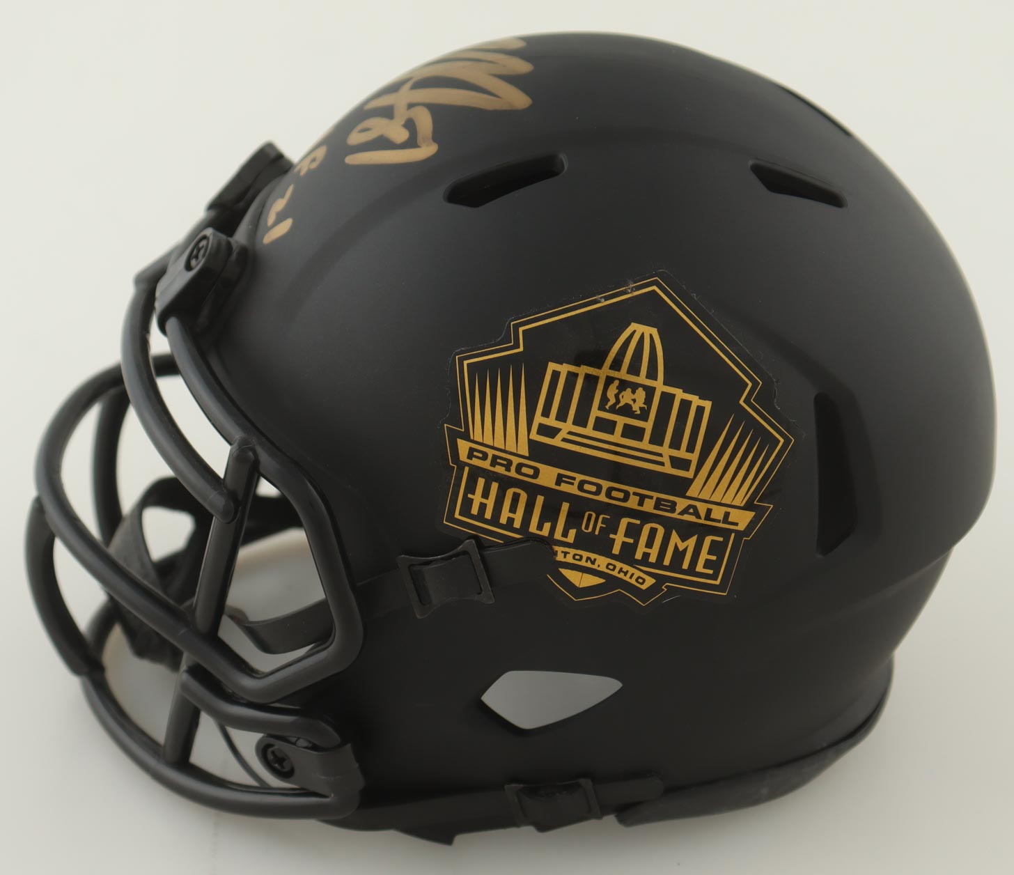 Riddell Pro Football Hall of Fame Alternate Speed mini helmet. Hand-signed and inscribed by Calvin Johnson (Detroit Lions, HOF).