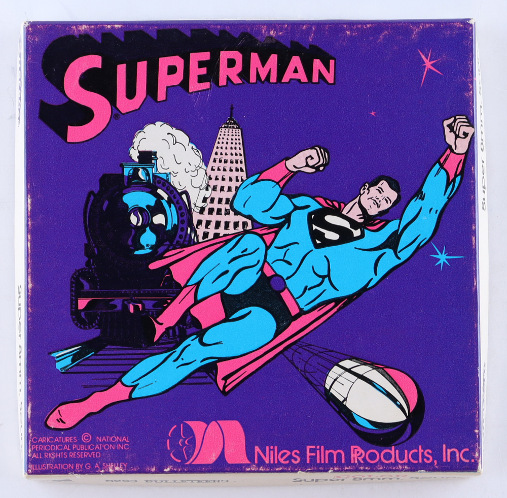 Vintage 1970s "Superman" Super 8 8mm Film Reel with original box. Please note, the film is unsigned.