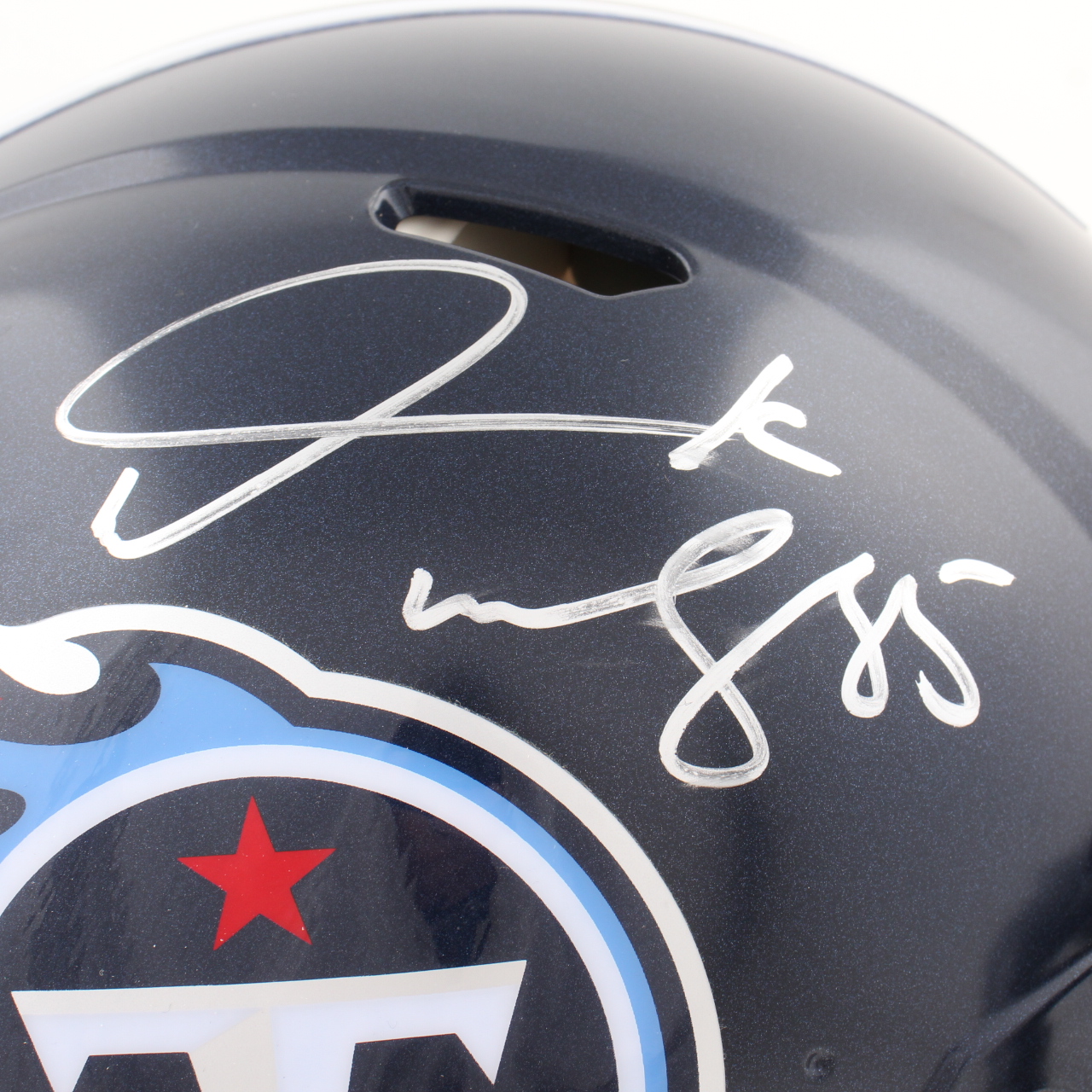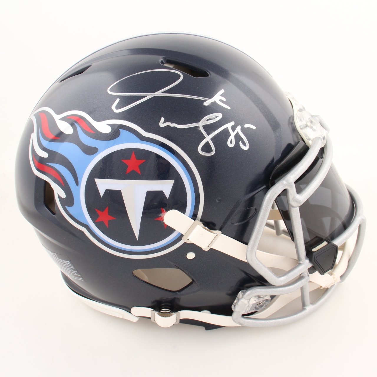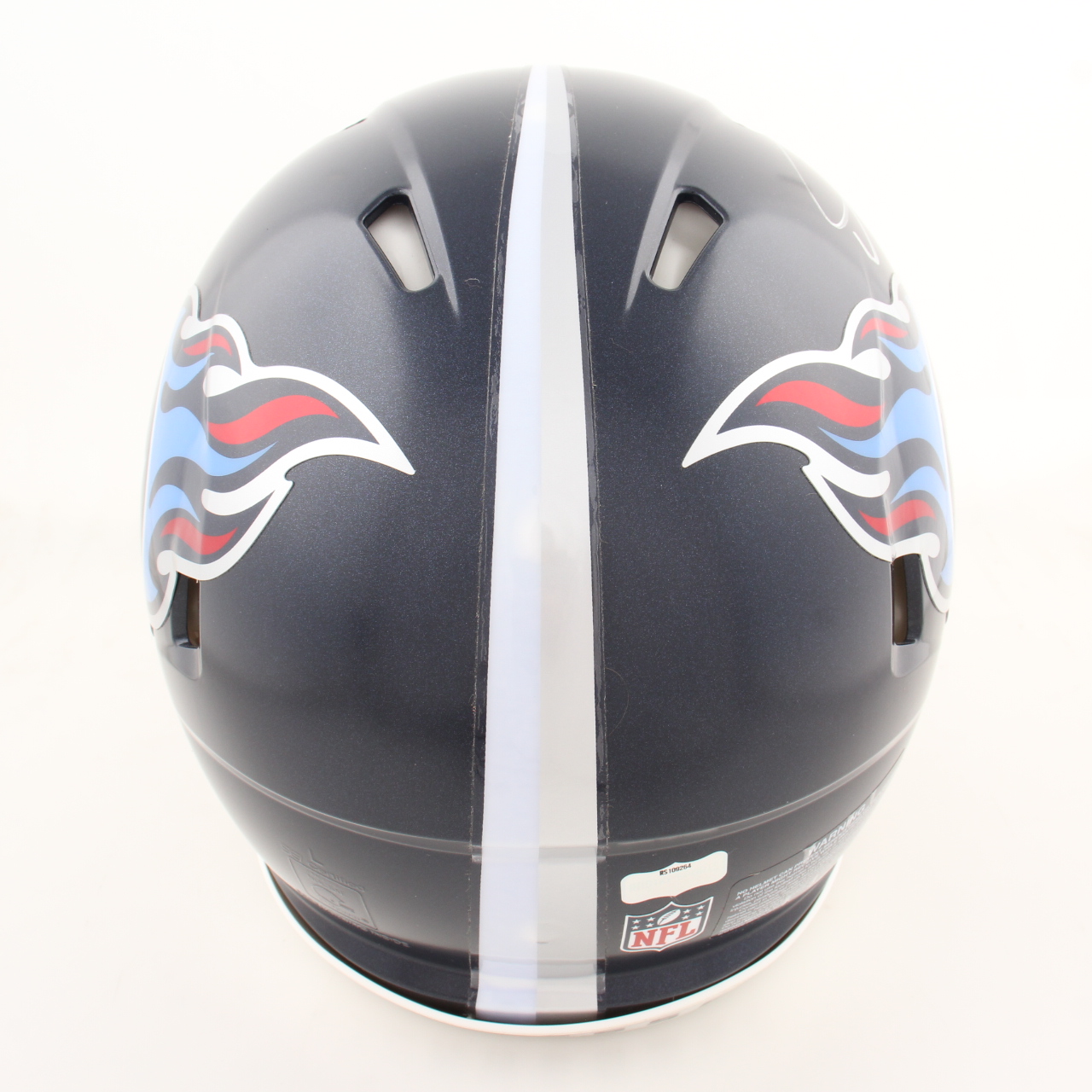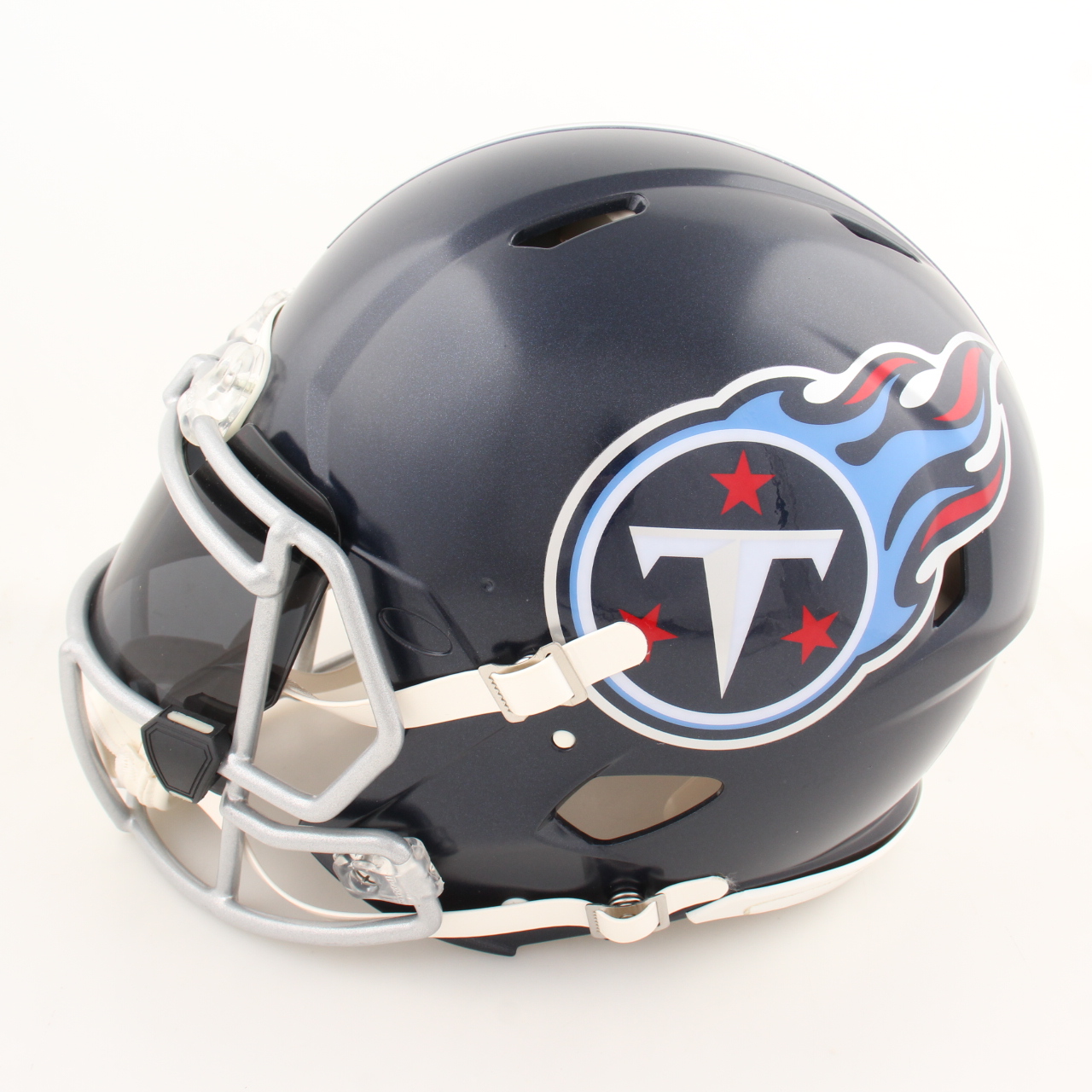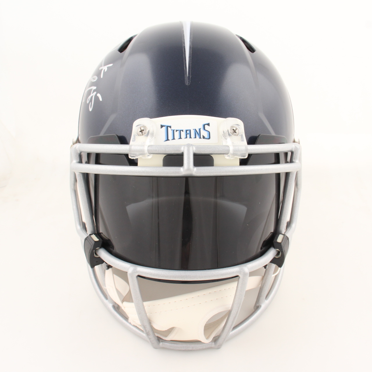 Riddell Tennessee Titans full-size authentic on-field Speed helmet with visor. Hand-signed by Derrick Mason. Please note, the autograph is slightly smudged.