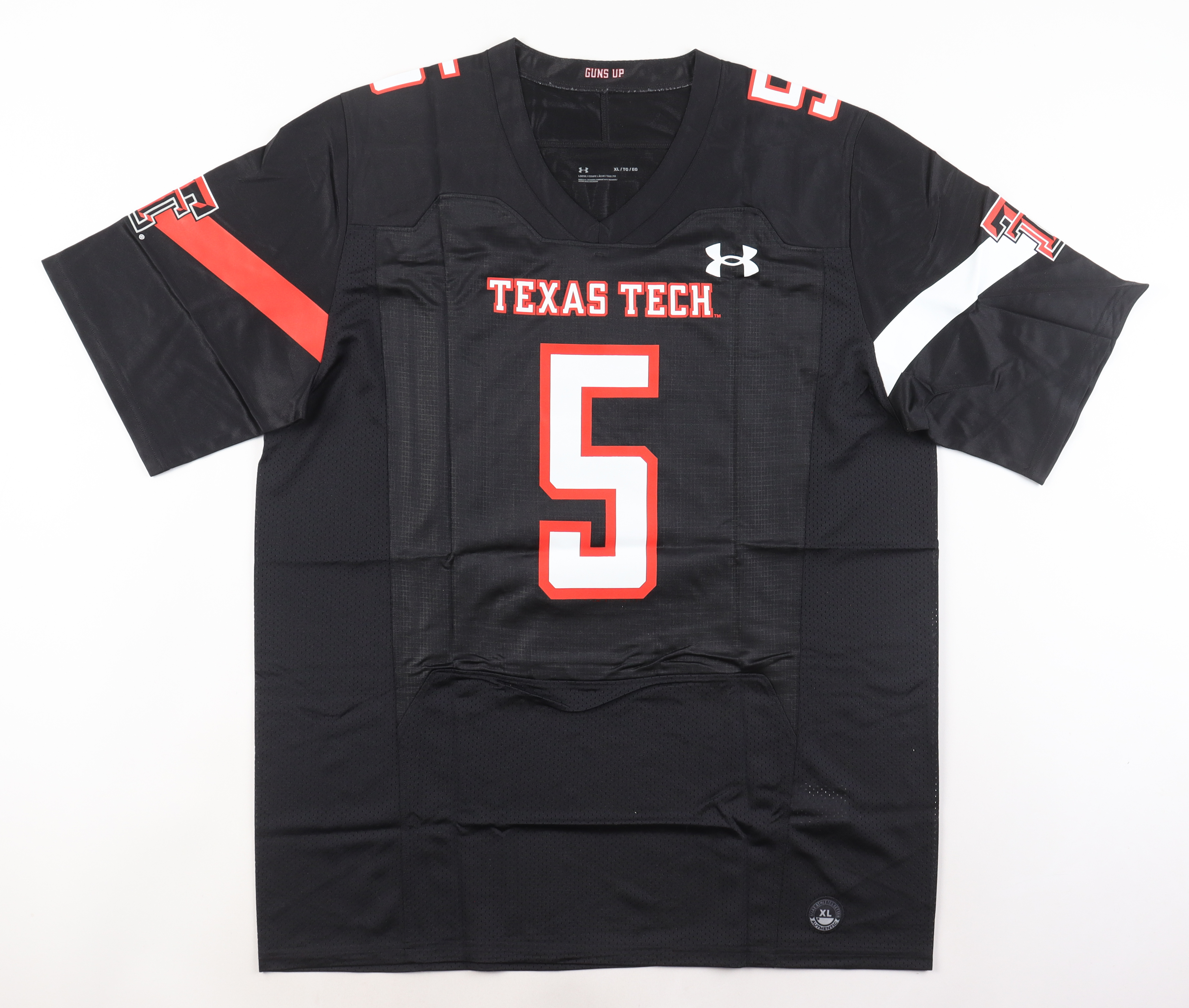Under Armour style jersey with everything pressed on, size XL. Hand-signed by Patrick Mahomes.