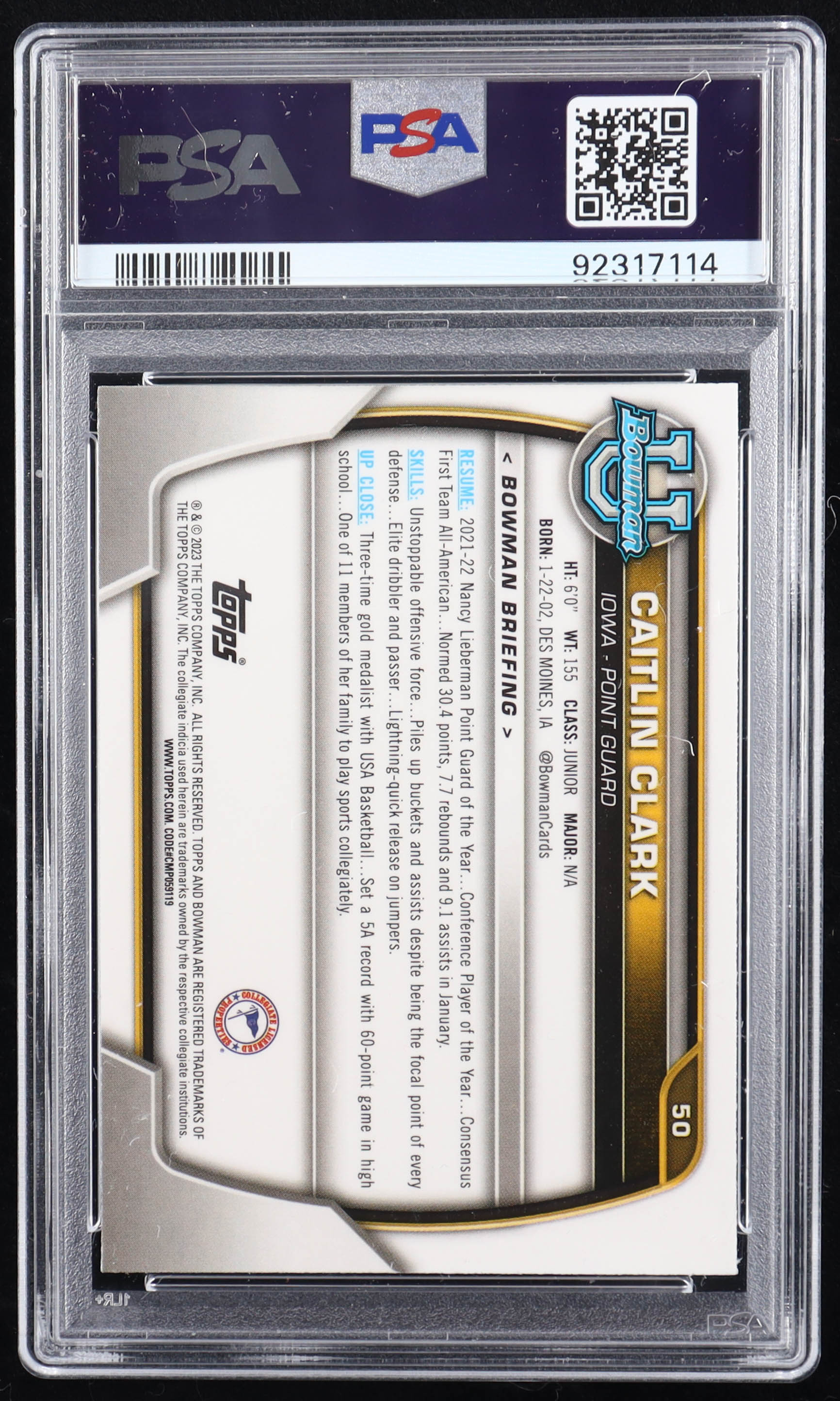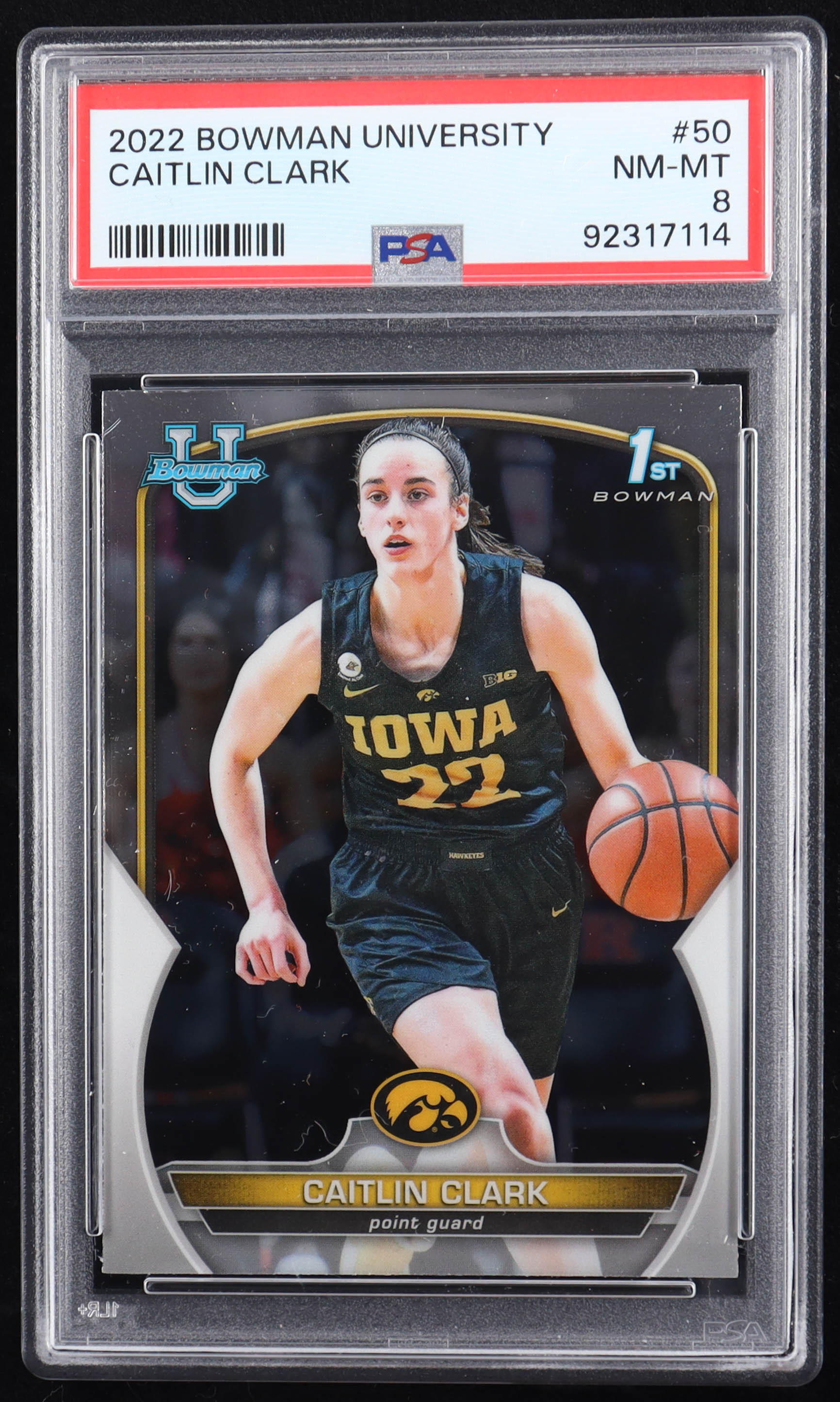Caitlin Clark 2022-23 Bowman Chrome University #50 RC (PSA 8)