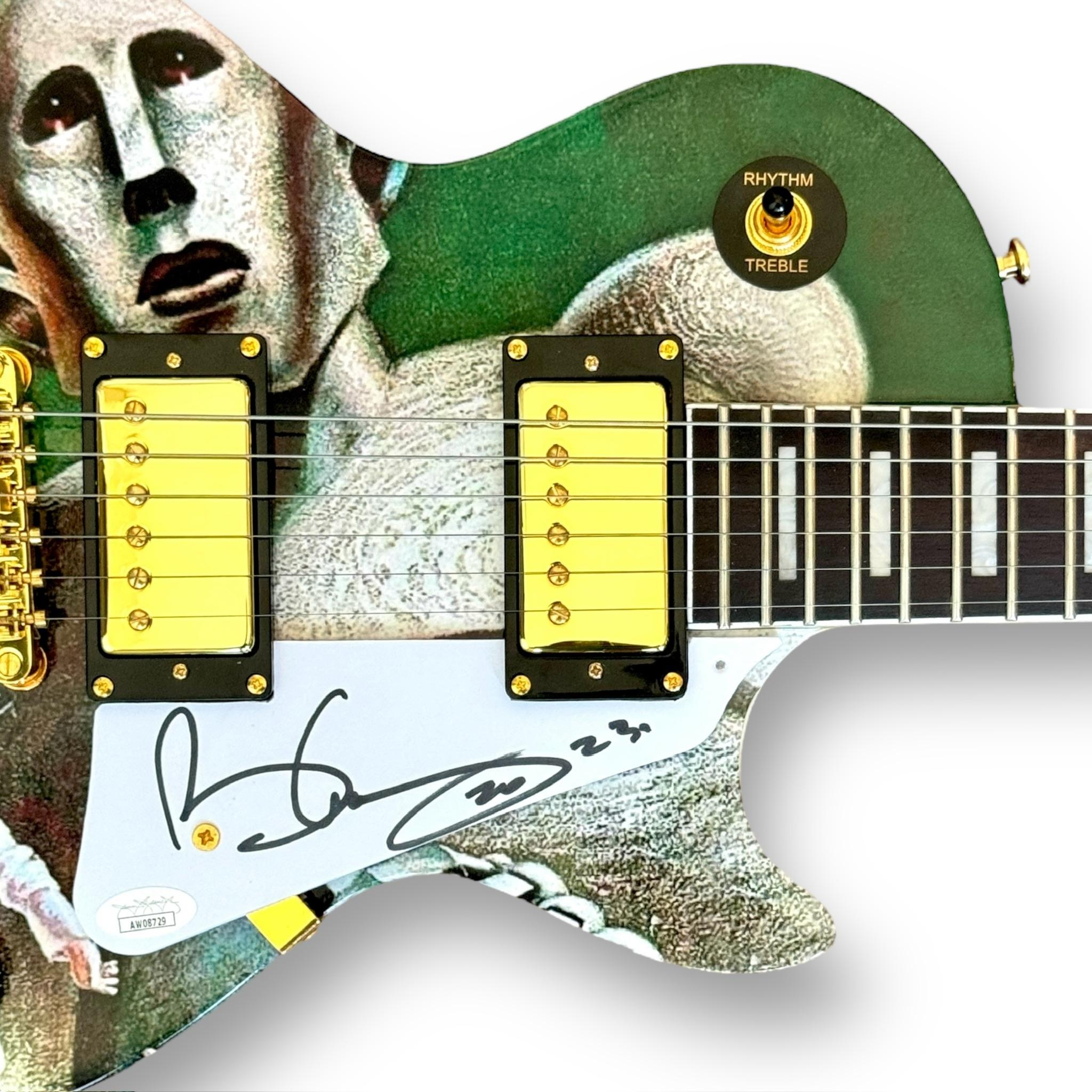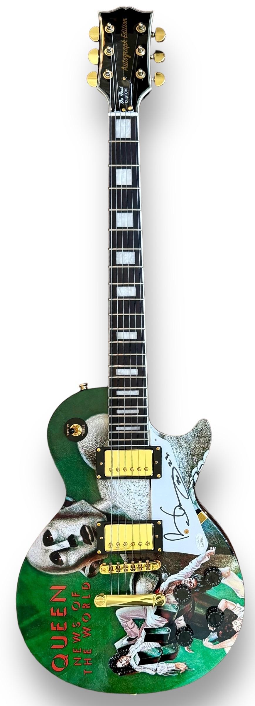 Custom Autograph Edition Les Paul style electric guitar measures approximately 39" in length and has been hand-signed on the pickguard by Brian May (lead guitarist).