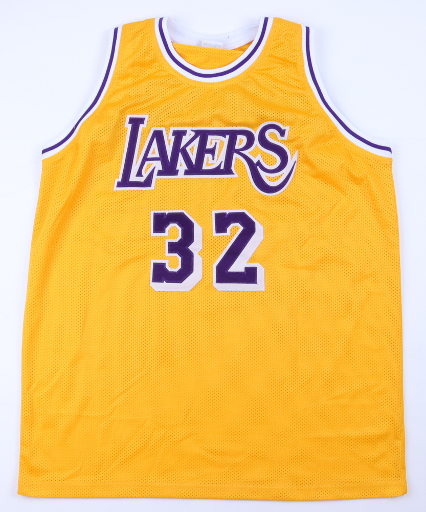 Custom jersey with everything sewn on, size XL. Hand-signed and inscribed by Magic Johnson (HOF).