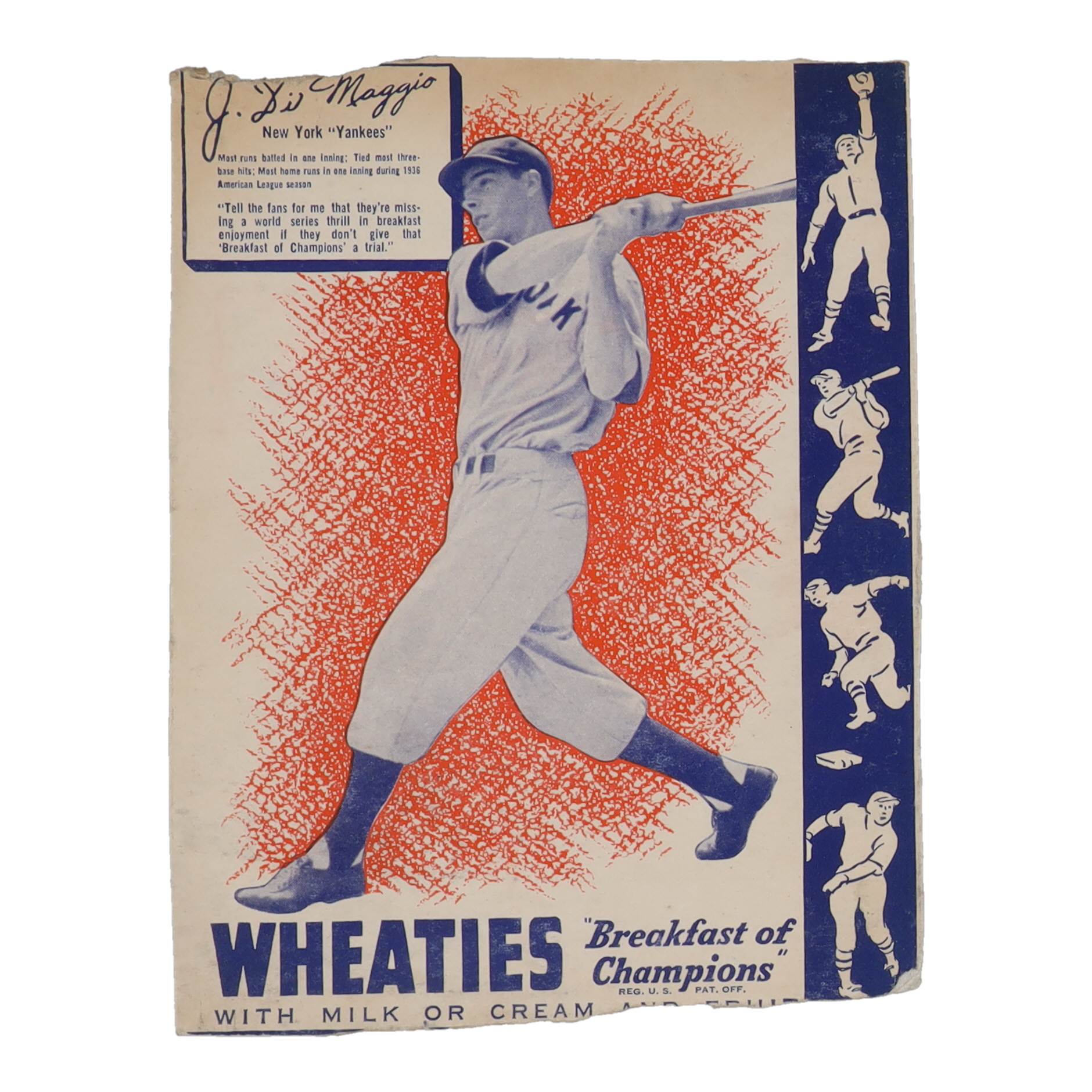 Joe DiMagggio 1937 Wheaties Hand Cut Cereal Box