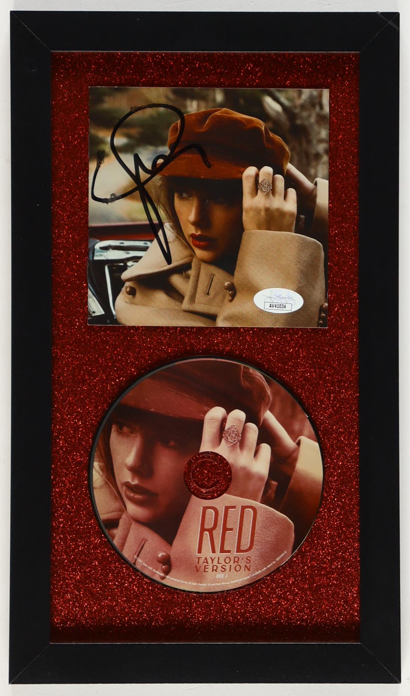 Custom frame measures approximately 7.75" x 13.25" in size. Features a "Red: Taylor's Version" CD album insert that has been hand-signed by Taylor Swift. The CD disc is included as shown. Please note, the autograph is smudged.