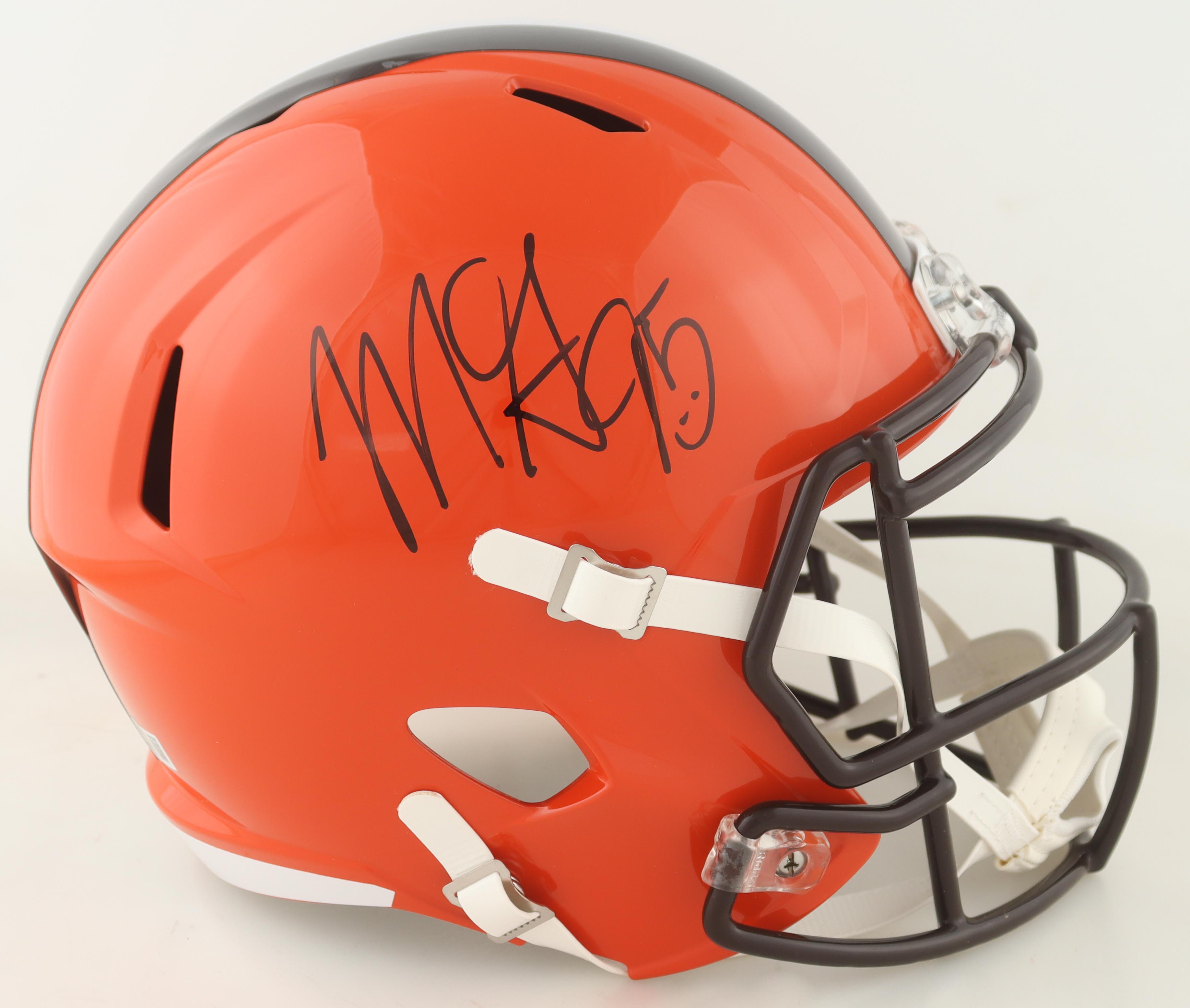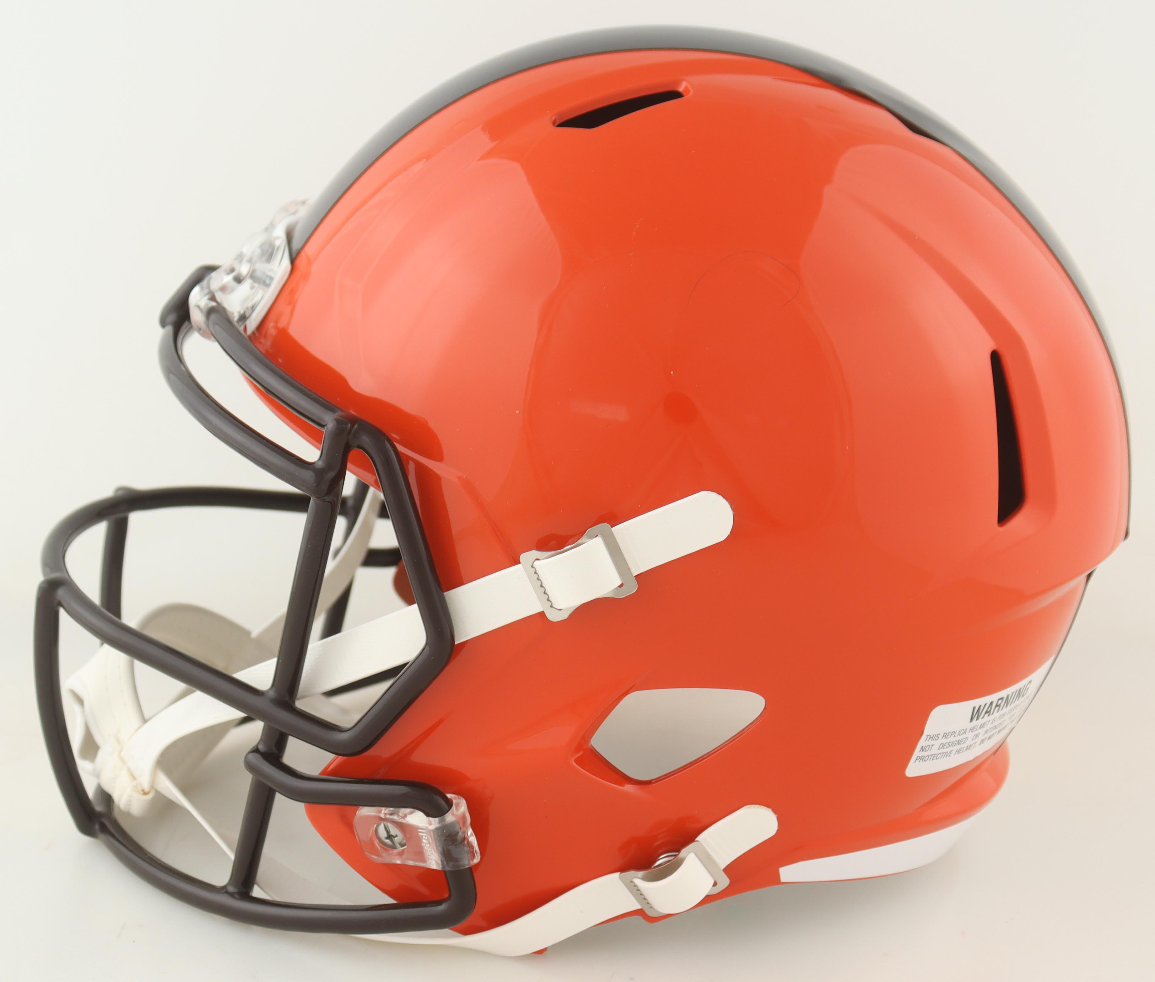 Riddell Cleveland Browns full-size Replica speed helmet has been hand-signed by Myles Garrett.