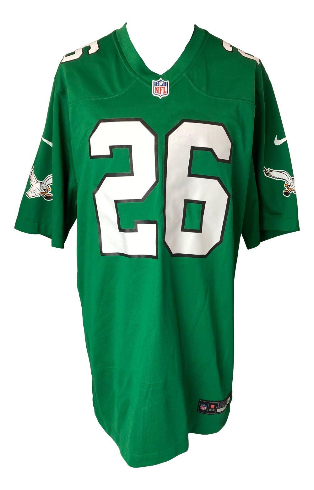 Nike style jersey with everything pressed on, size XL. Hand-signed by Saquon Barkley (Philadelphia Eagles).