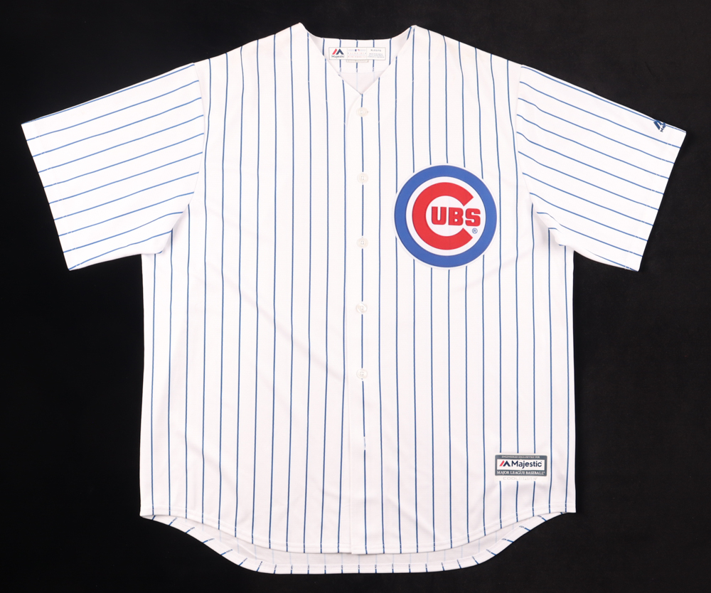 Majestic jersey. Everything is pressed on, size XL. Hand-signed and inscribed by Kris Bryant (Chicago Cubs).