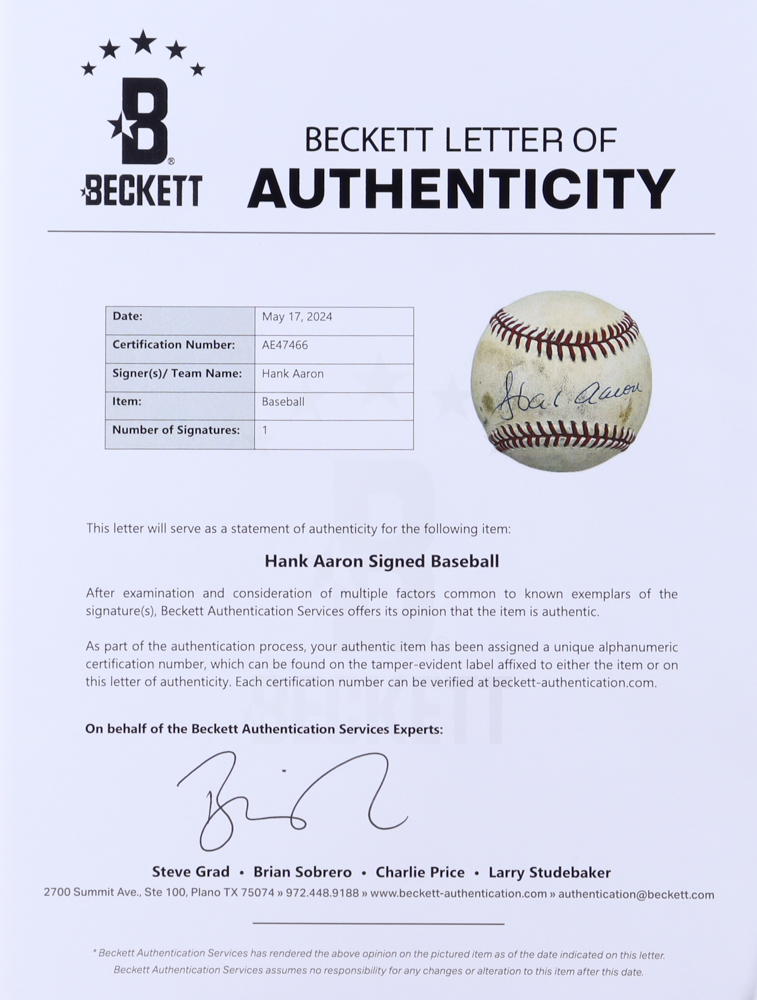 The autograph includes an official Beckett Authentication Services hologram and matching LOA for authenticity purposes.