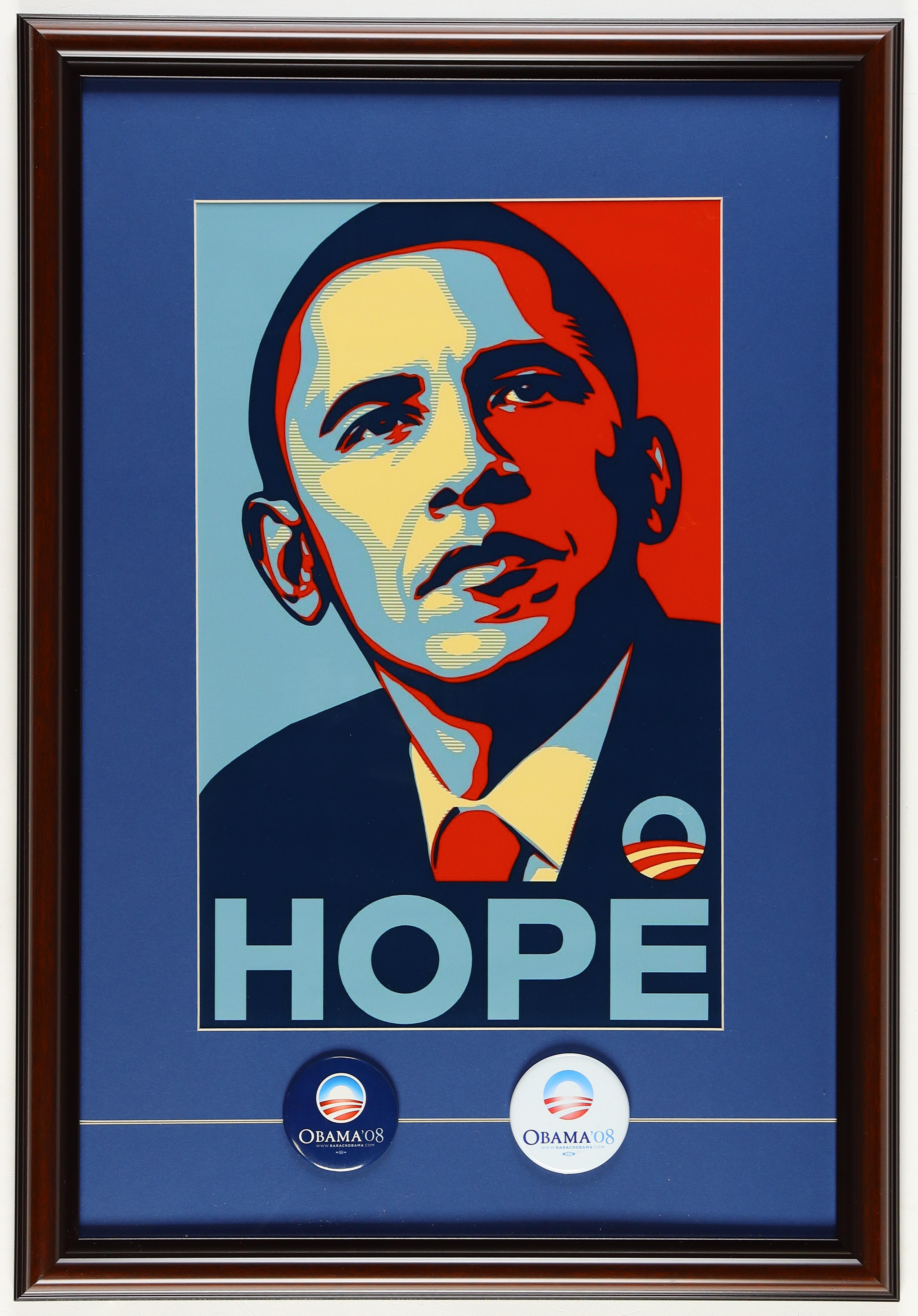 Barack Obama "Hope" Custom Framed Poster Display with (2) 2008 Campaign Pins