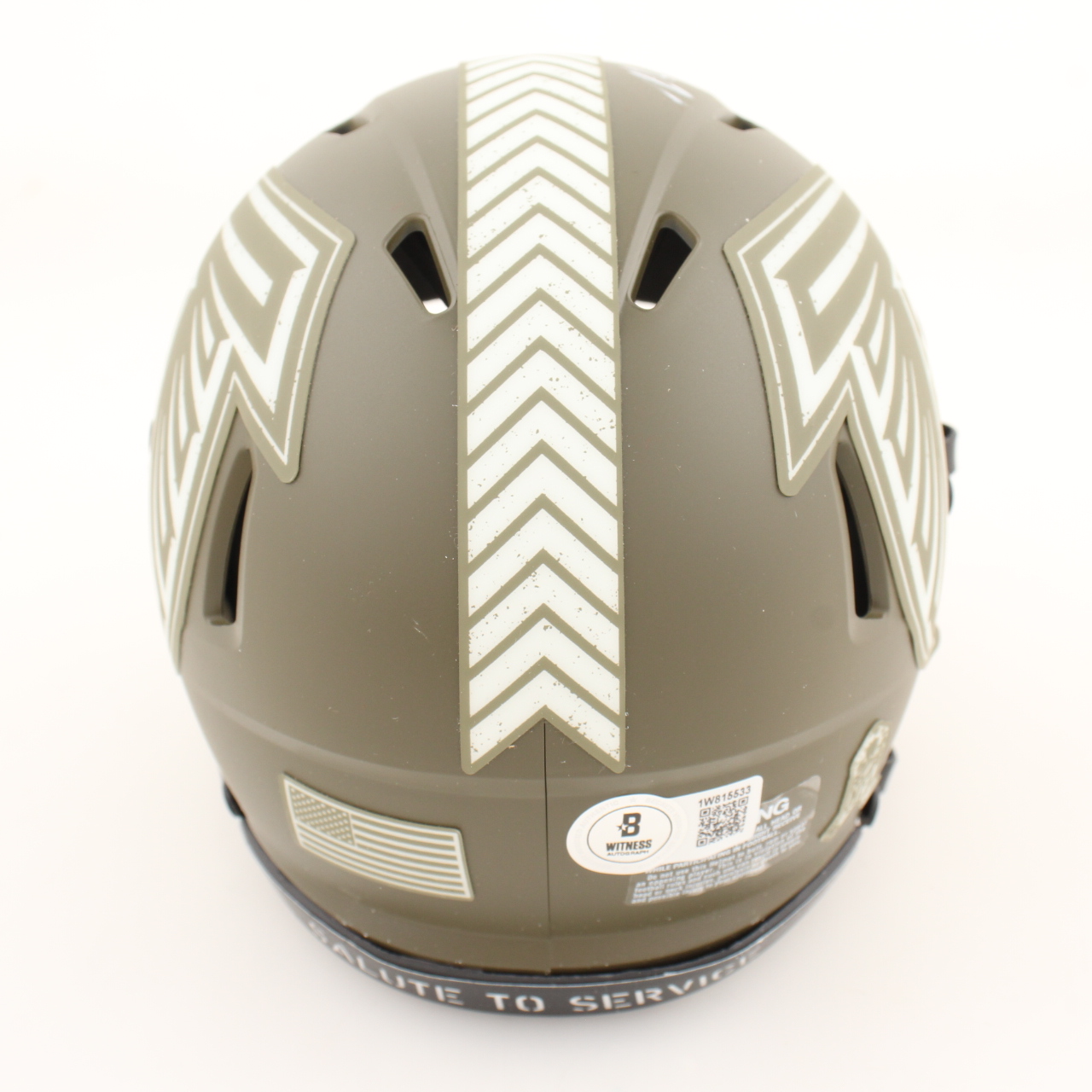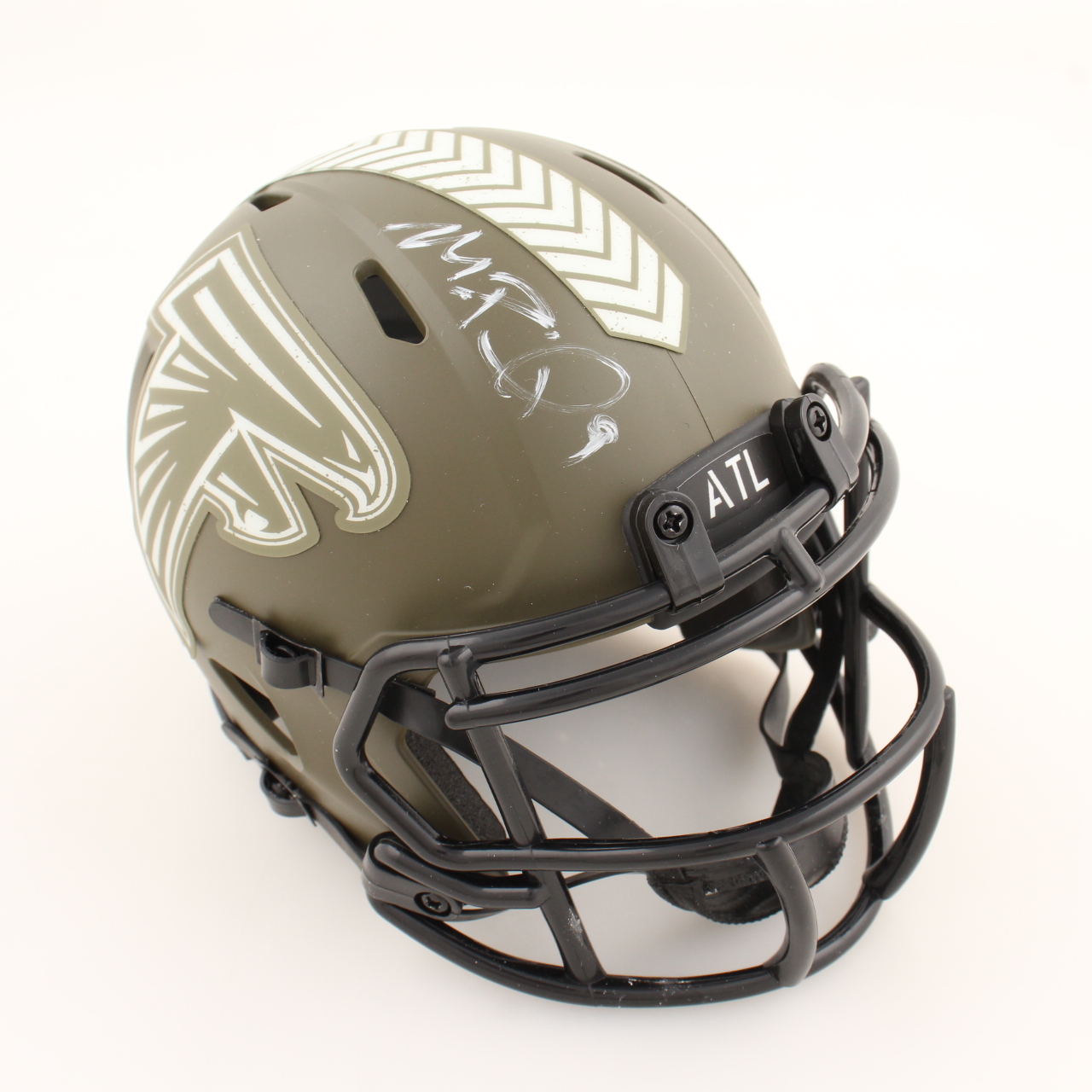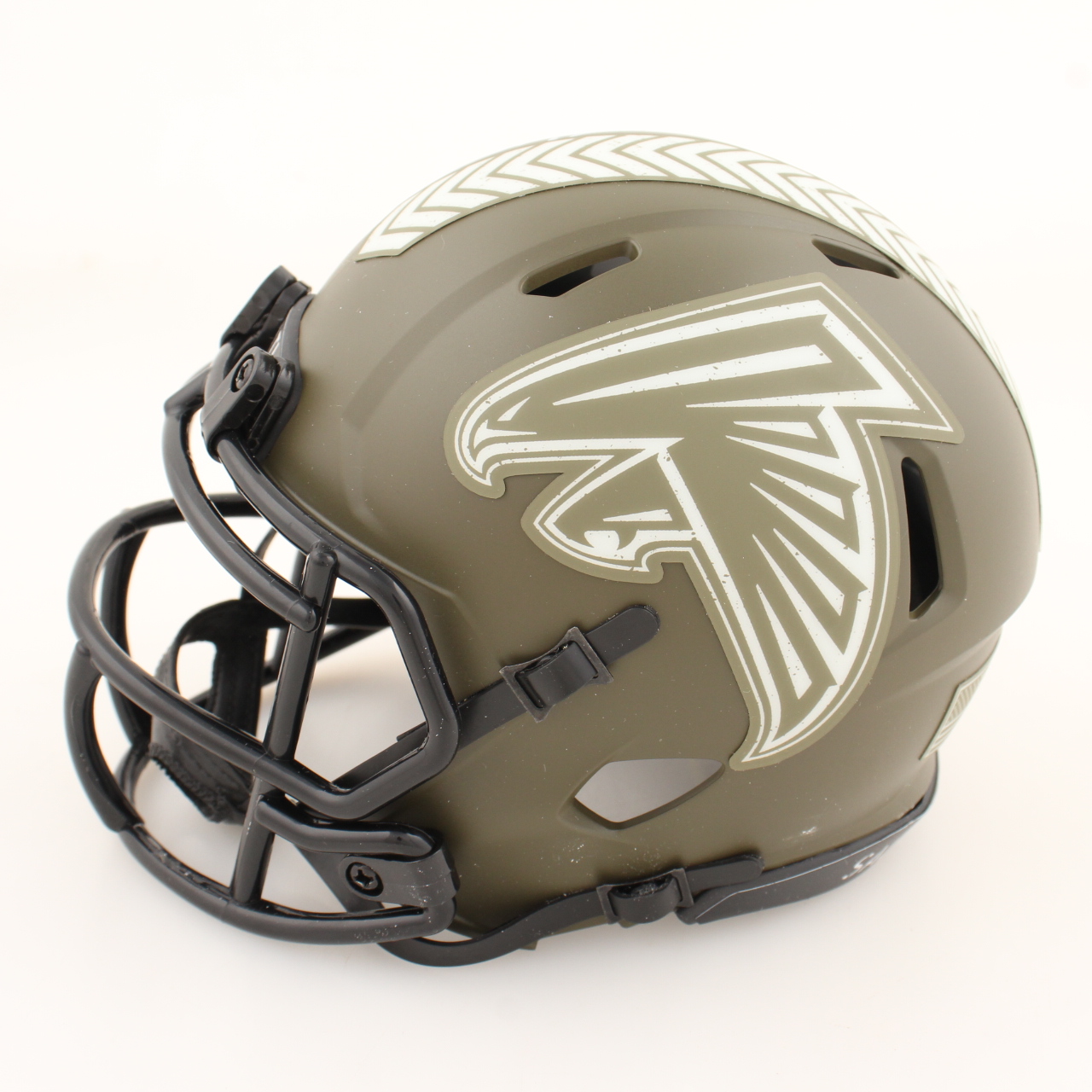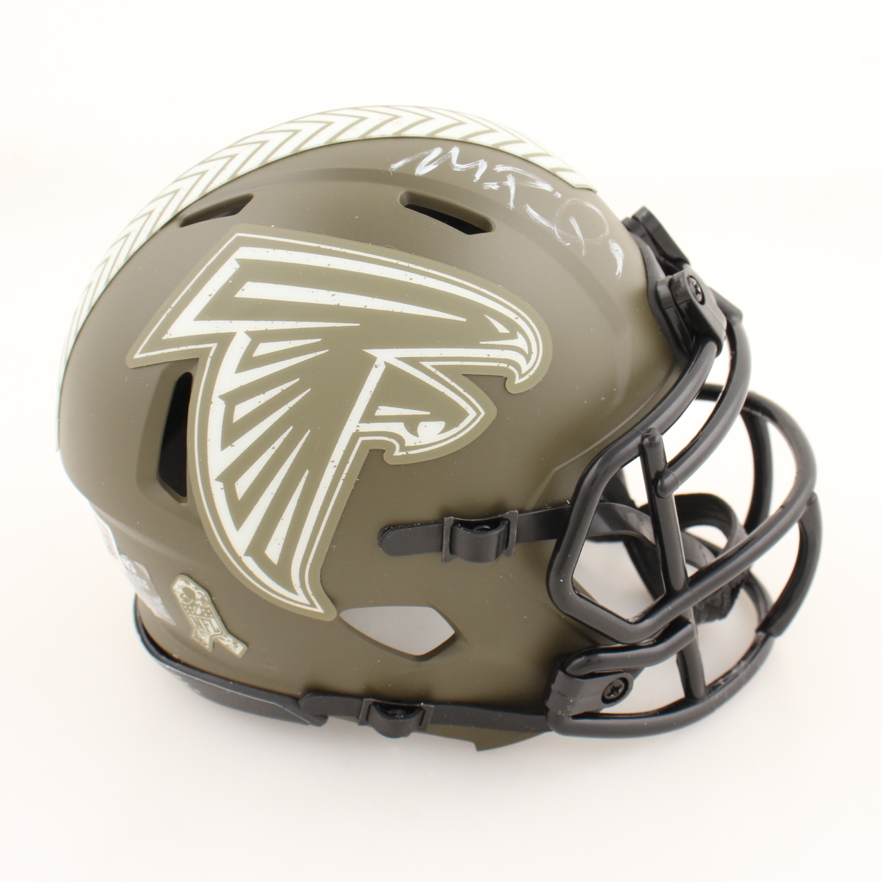 Riddell Atlanta Falcons Salute To Service Alternate Speed mini helmet. Hand-signed by Michael Penix Jr. Please note, the autograph is faint.