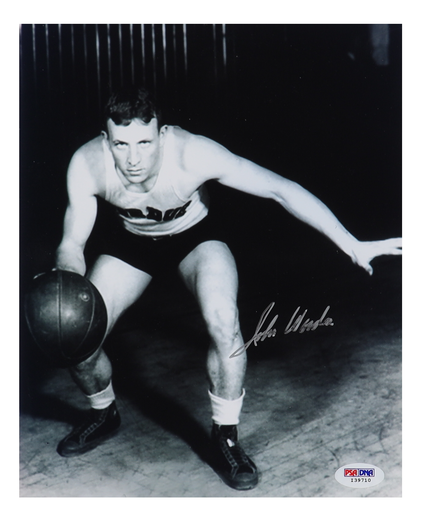 Photo measures 8" x 10" in size and has been hand-signed by John Wooden (D. 2010, HOF).