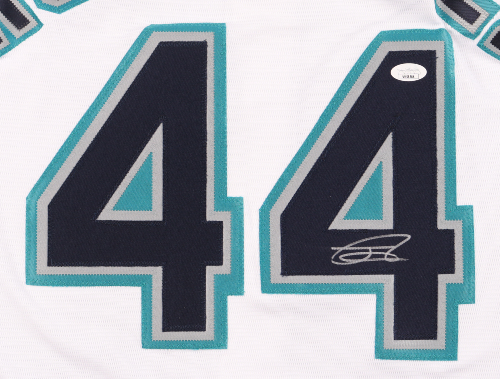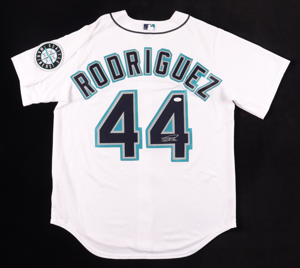 Nike jersey. Everything is sewn on, size L. Hand-signed by Julio Rodriguez (Seattle Mariners).