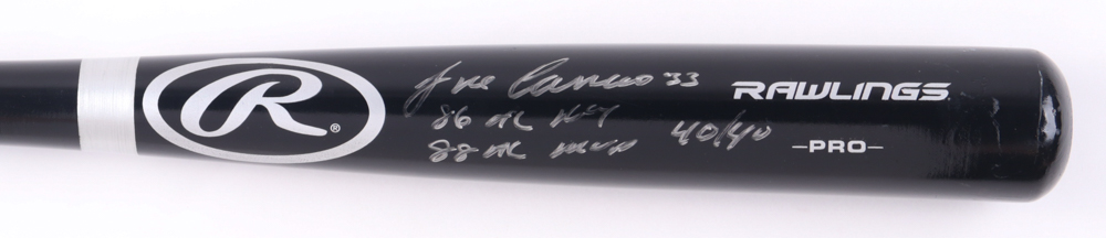 Jose Canseco Signed Rawlings Pro Baseball Bat Inscribed "86 AL ROY", "88 AL MVP" & "40/40" (JSA)
