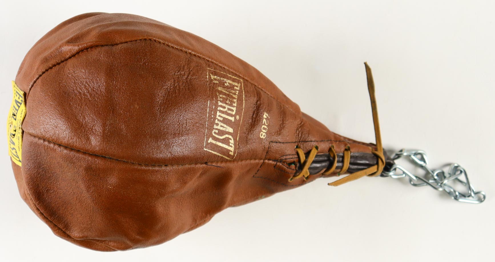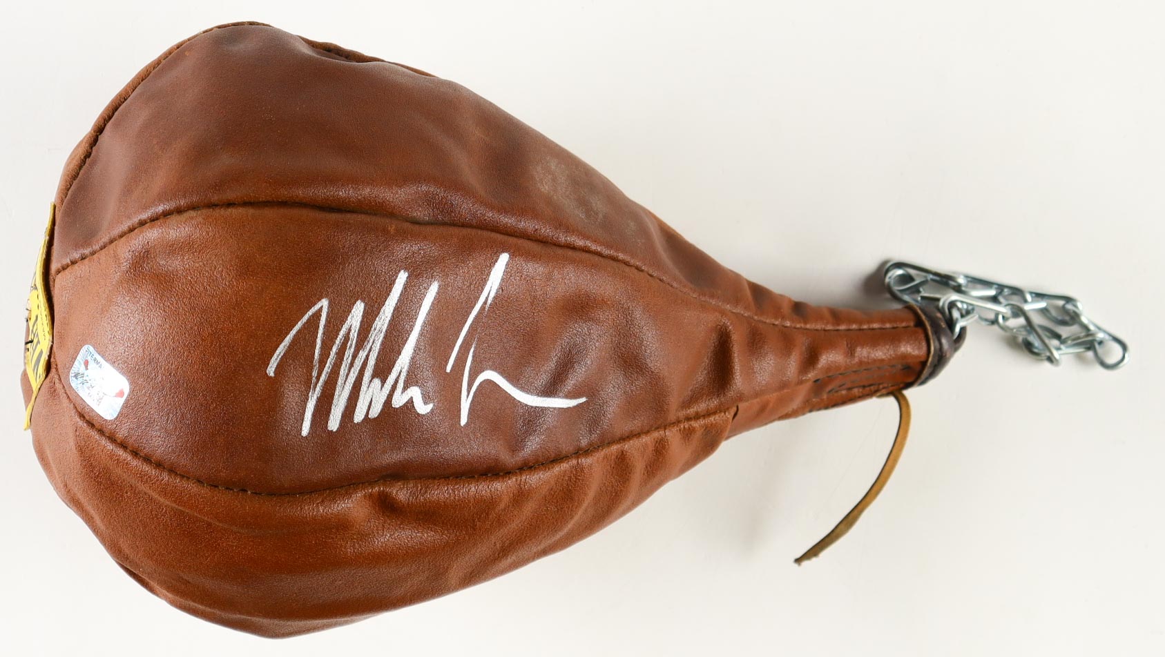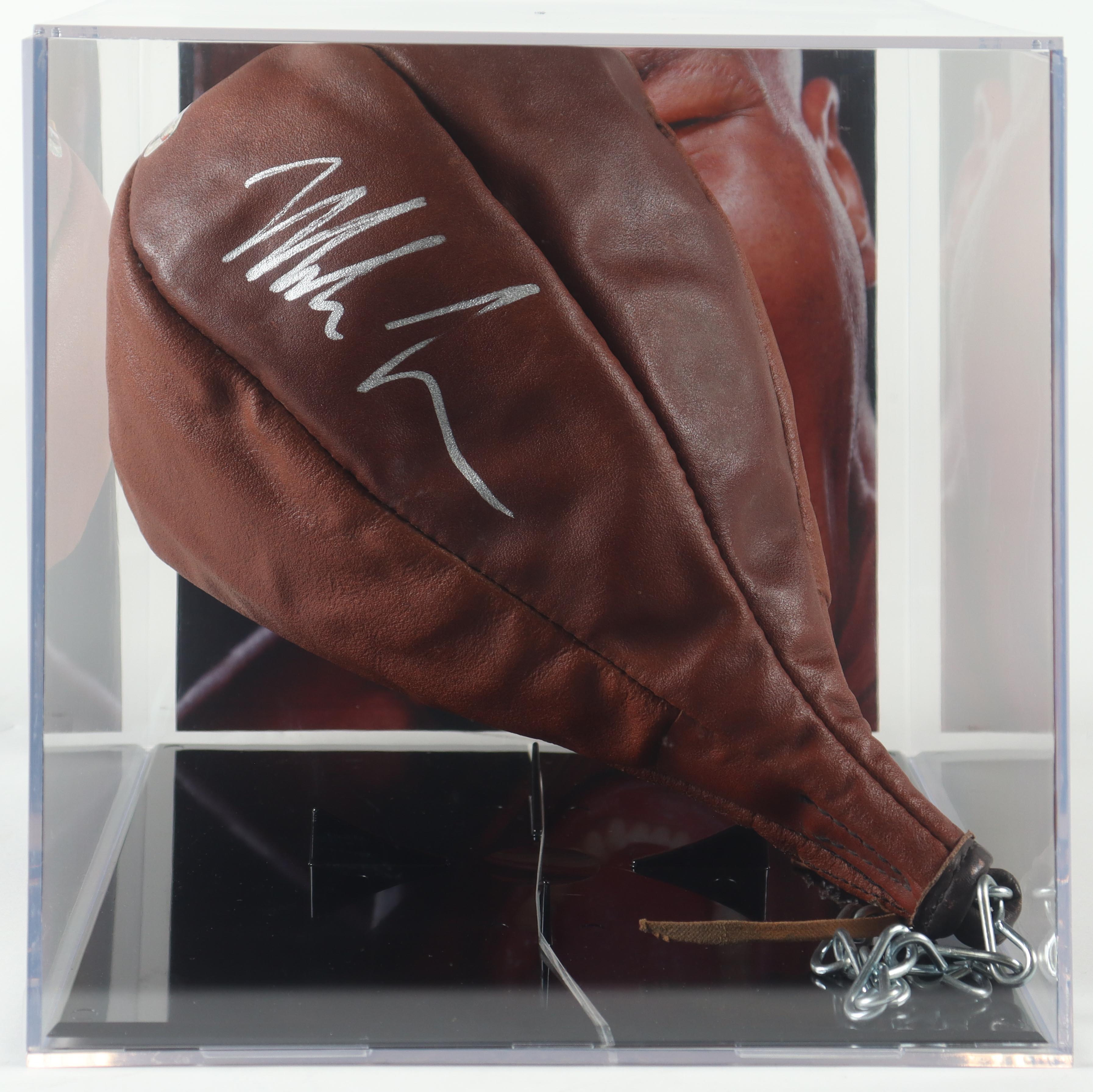 Vintage Everlast speed bag has been hand-signed by Mike Tyson (HOF). Display case is included as shown.