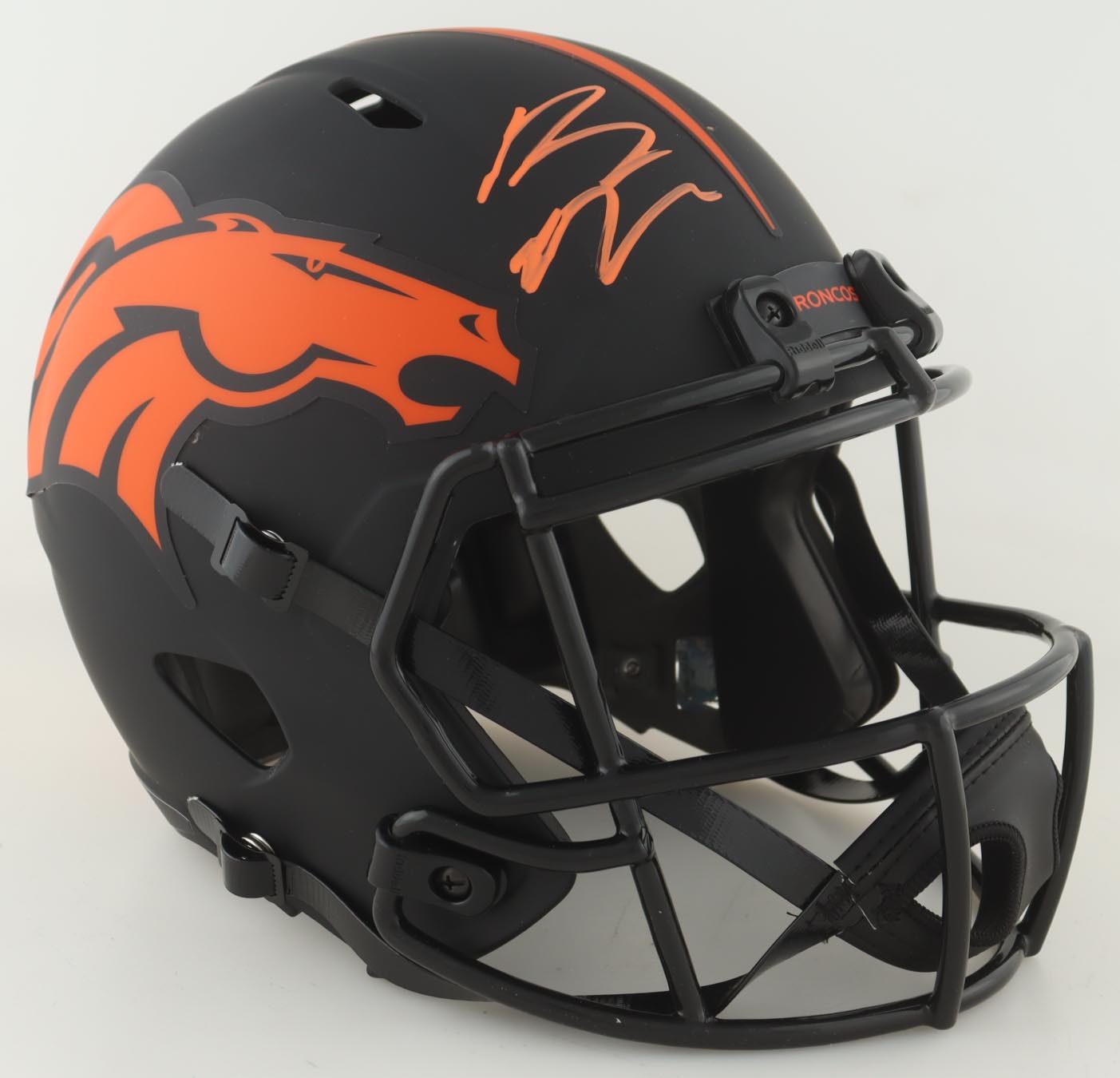 Riddell Denver Broncos full-size replica eclipse alternate speed helmet. Hand-signed by Bo Nix.