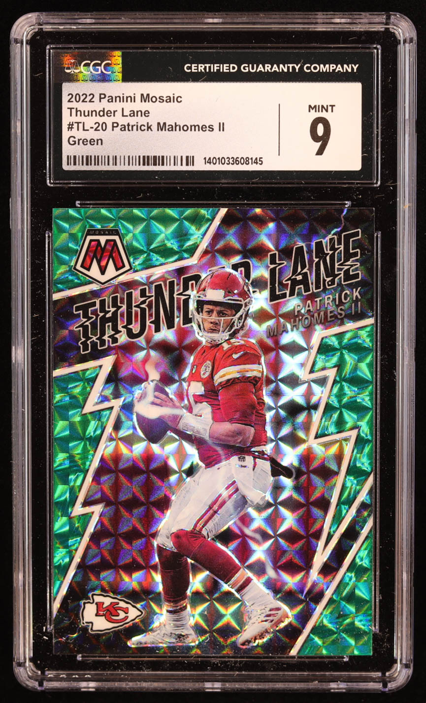 Patrick Mahomes II 2022 Panini Mosaic Thunder Lane Mosaic Green #20 (CGC 9)