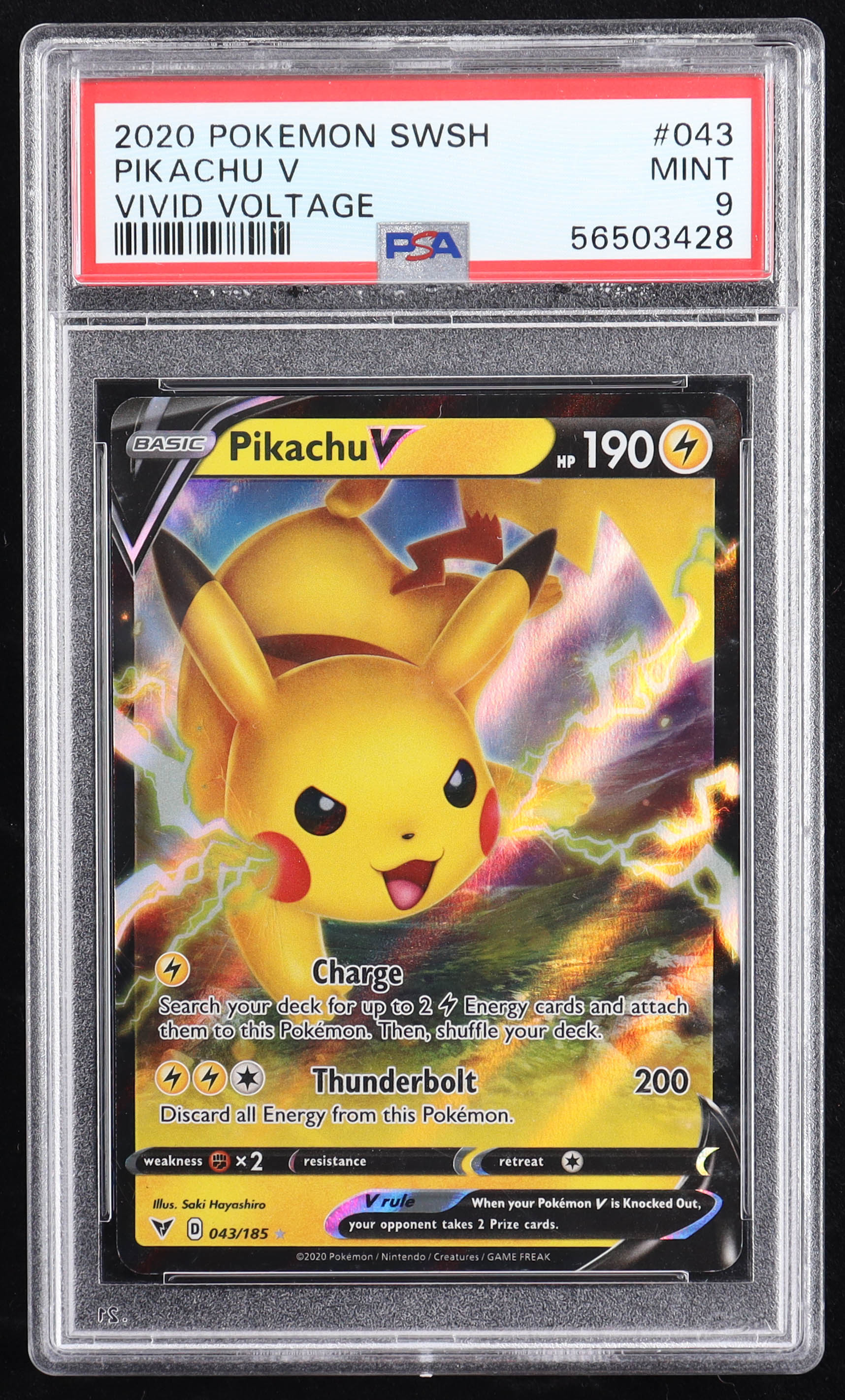 Pikachu V 2020 Pokemon Sword and Shield Vivid Voltage #43 (PSA 9)