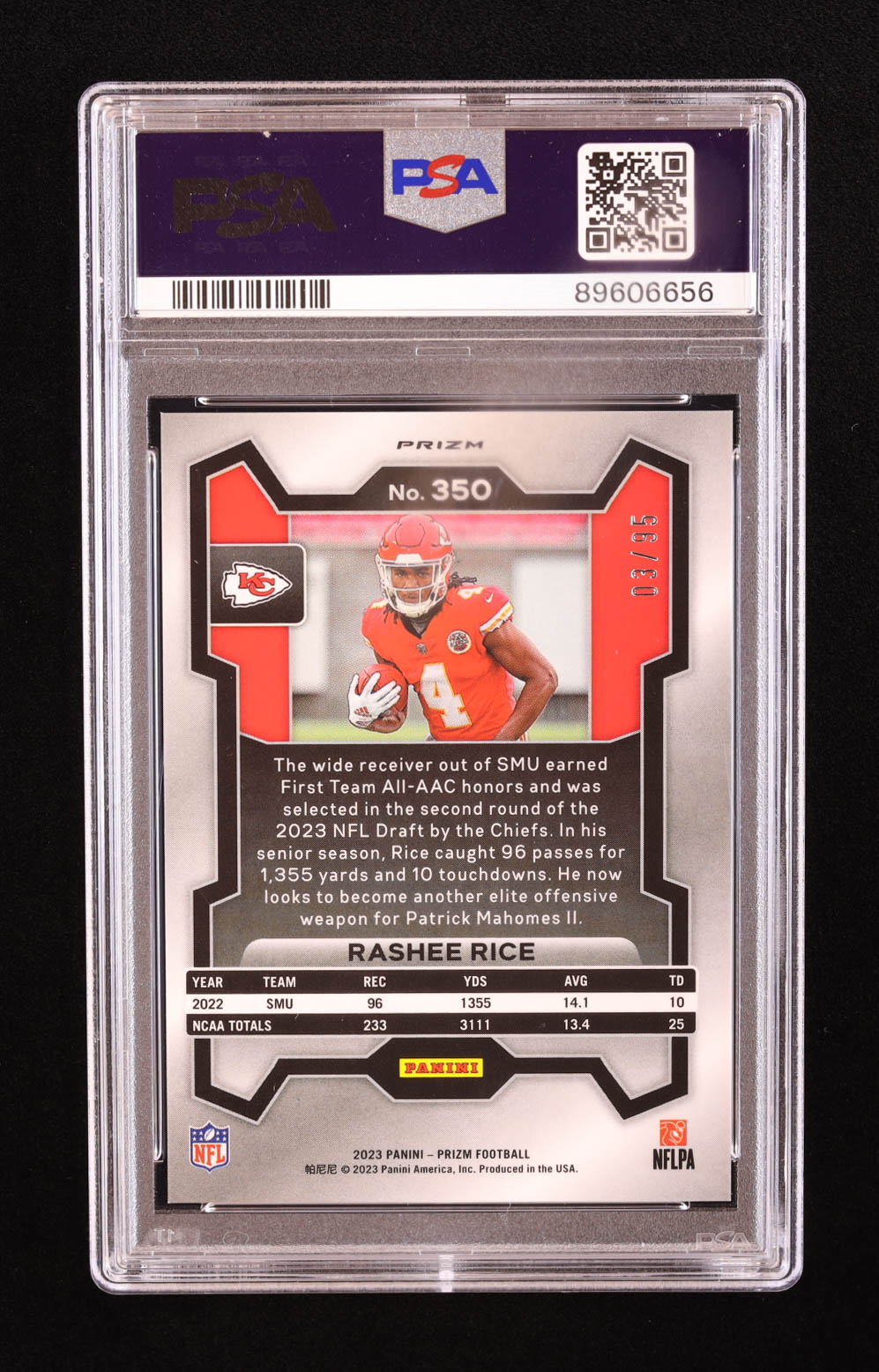 Rashee Rice 2023 Panini Prizm Prizms No Huddle Blue #350 #03/95 RC (PSA 10)