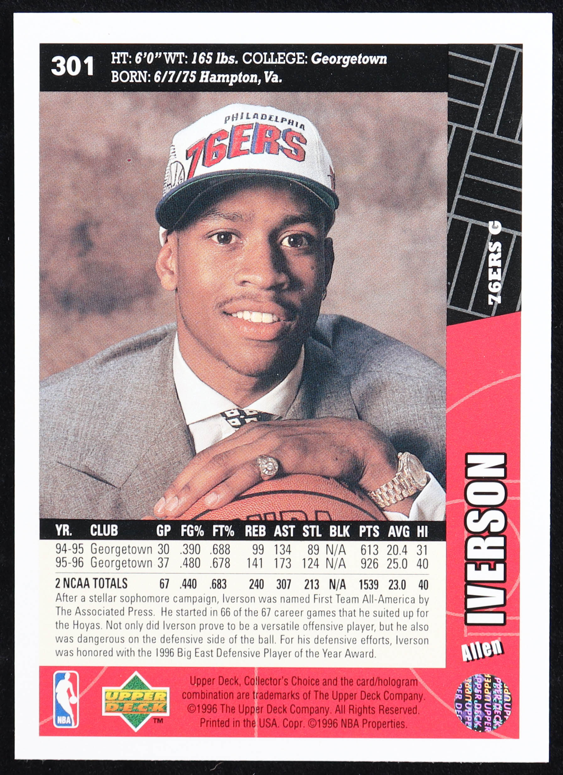 Allen Iverson 1996-97 Collector's Choice #301 RC