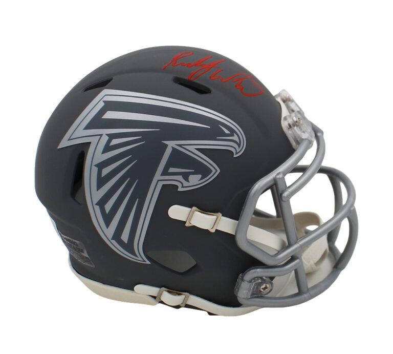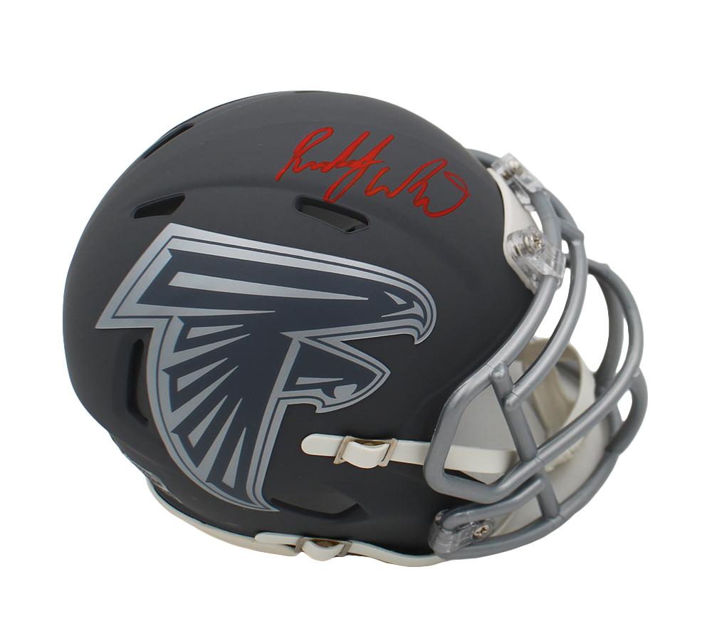 Riddell Atlanta Falcons slate alternate speed mini helmet has been hand-signed by Roddy White.