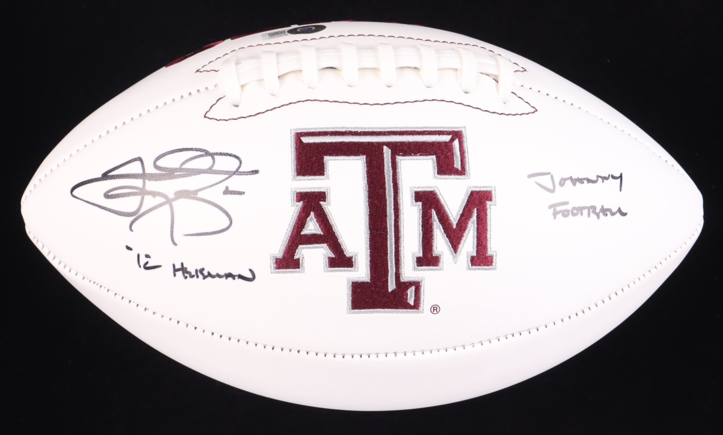 Johnny Manziel Signed Texas A&M Aggies Logo Football Inscribed "'12 Heisman" & "Johnny Football" (Beckett)