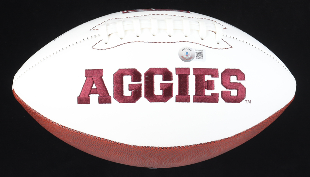 Texas A&M Aggies logo football has been hand-signed and inscribed by Johnny Manziel.