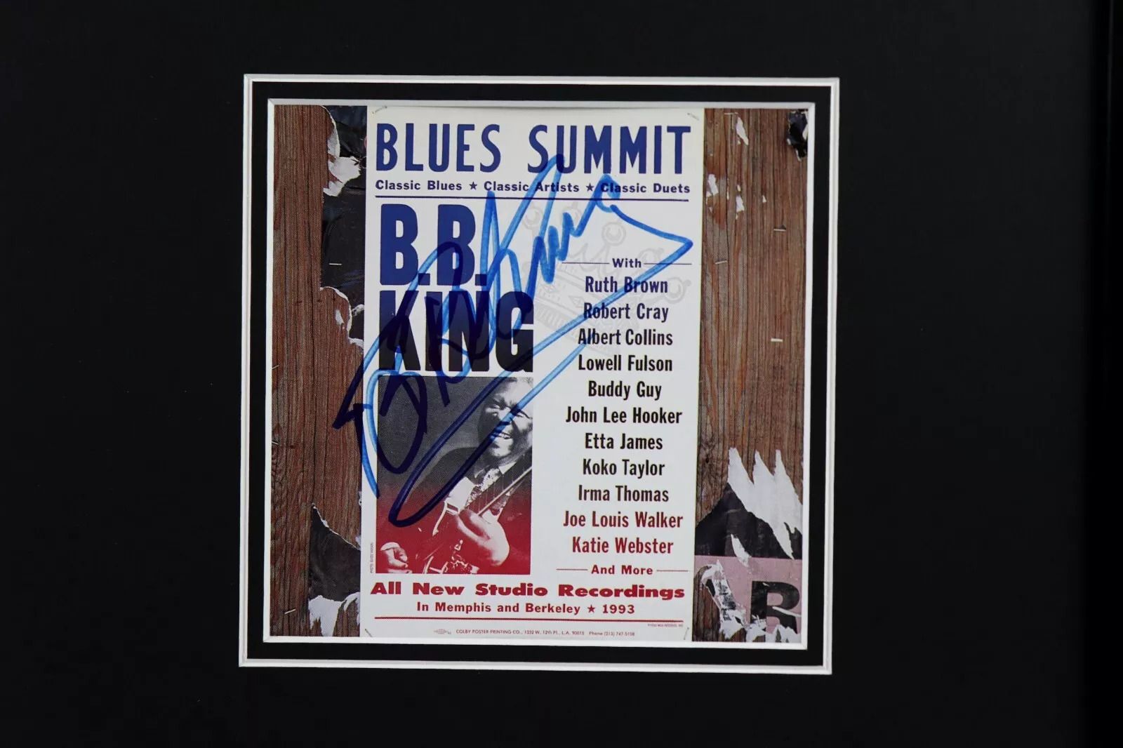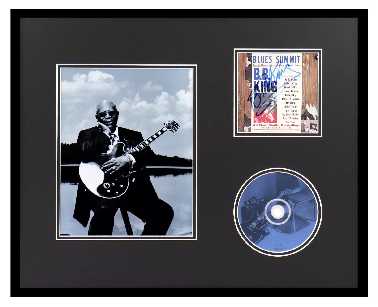Custom frame measures approximately 16" x 20" in size. Features a "Blues Summit" CD album insert that has been hand-signed by B.B. King. The CD disc is included as shown.